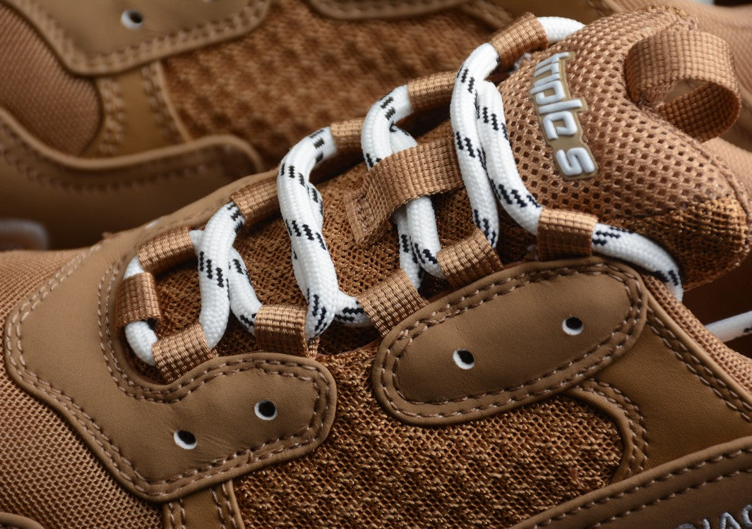 Der Balenciaga Triple S Khaki bringt die charakteristische Chunky-Silhouette in eine neue Dimension der Eleganz. In einem warmen Khaki-Farbton gehalten, kombiniert dieser Sneaker robustes Mesh, Leder und Nubuk für ein strukturiertes und zugleich luxuriöses Finish. Die ikonische dreifache Zwischensohle sorgt nicht nur für maximalen Style, sondern auch für außergewöhnlichen Komfort und Stabilität. Die Farbgebung in Naturtönen wird durch weiße und schwarze Akzente in den Schnürsenkeln kontrastiert, während das seitlich gestickte Balenciaga-Logo den Premium-Charakter unterstreicht. Ideal für Fashion-Enthusiasten, die klobige Ästhetik mit dezenter Farbgebung bevorzugen.