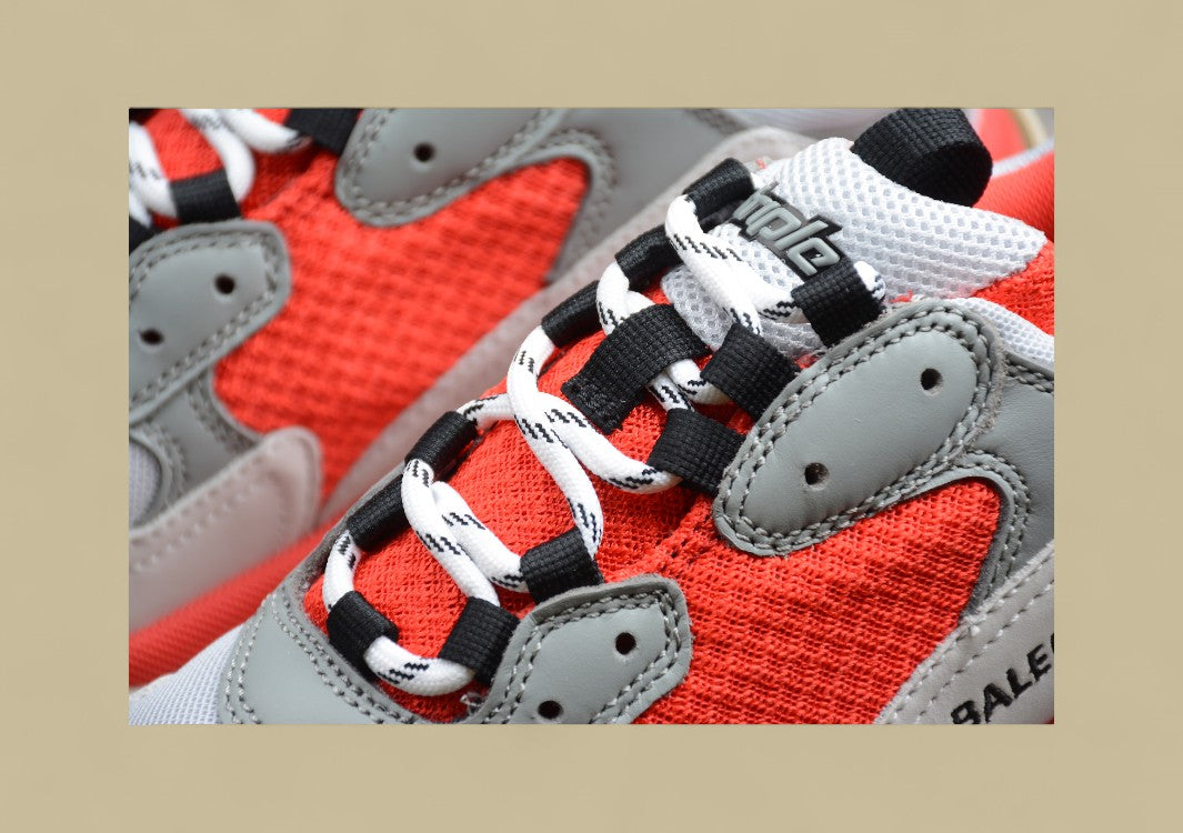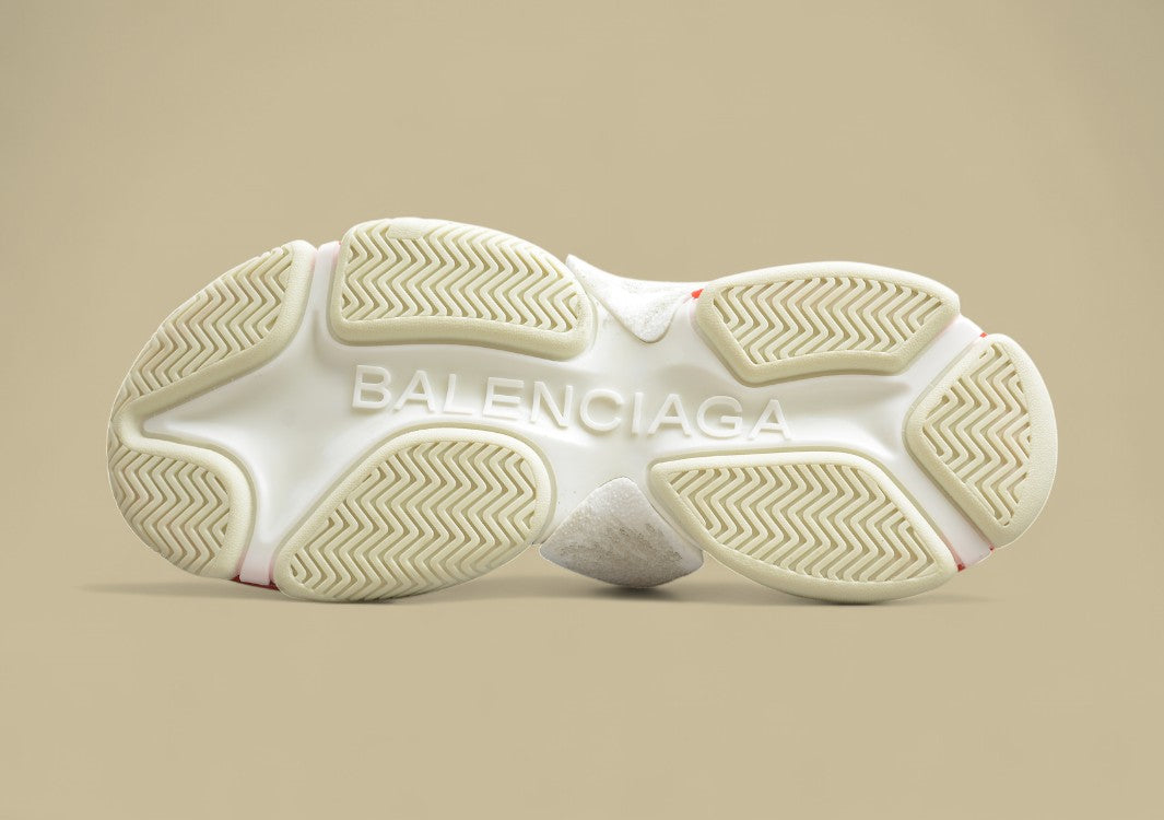 Der Balenciaga Triple S Multi Red Grey besticht durch seine auffällige Farbkomposition und das markante Chunky-Design. Die Kombination aus grauen, weißen und roten Elementen auf dem Obermaterial aus Mesh und Kunstleder verleiht dem Sneaker einen ausdrucksstarken Vintage-Look. Die dreifarbige Sohle – mit beige, marineblauen und korallenroten Akzenten – sorgt für Tiefe und Charakter, während die typische Triple-S-Konstruktion bequemen Halt und ein kraftvolles Auftreten garantiert. Das Balenciaga-Logo in Schwarz an der Seitenpartie rundet das Design ab. Ein trendstarker Schuh für alle, die auffallen möchten, ohne auf Komfort zu verzichten.