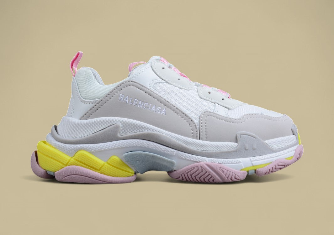 Der Balenciaga Triple S „Parisian Family“ ist eine stilistische Ikone, die Retro-Dad-Silhouette mit französischem Esprit verbindet. Inspiriert vom Pariser Streetstyle, kombiniert dieser Sneaker Vintage-Elemente mit moderner Exzentrik. Die charakteristisch voluminöse Sohle mit dreifachem Schichtaufbau („Triple S“) steht für maximale Präsenz und urbanen Luxus. Hochwertige Materialien, darunter Mesh, Nubuk und Leder, werden in einer mehrfarbigen, aber harmonischen Palette verarbeitet – mit subtilen Details, die an französische Eleganz erinnern. Der „Parisian Family“-Schriftzug macht das Modell zu einer besonderen Edition für Kenner. Ein Sneaker, der Nostalgie, Komfort und modischen Mut vereint.