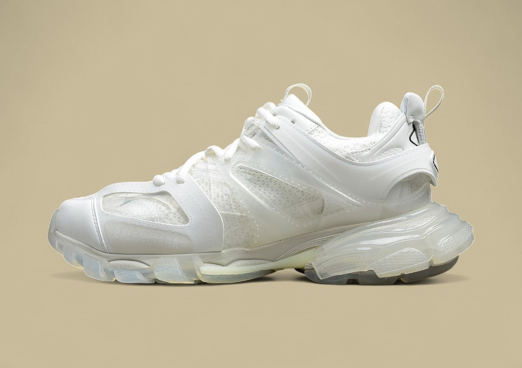 Der Balenciaga Triple White Translucent Tech Runner Sneaker kombiniert transparentes Sohlenprofil mit modernem Design und hohem Komfort.