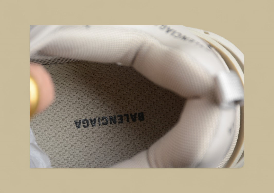 Die Balenciaga Triple-S 1.0 Retro Daddy Shoes in Khaki Grau kombinieren erdige Natürlichkeit mit technischer Raffinesse und ikonischem Chunky-Design. Das Obermaterial besteht aus einer hochwertigen Materialmischung aus Mesh, Leder und strukturierten Synthetik-Overlays in abgestuften Khaki- und Grautönen, die dem Schuh eine robuste, gleichzeitig stilvolle Ausstrahlung verleihen. Die berühmte dreifache Gummisohle sorgt für markante Präsenz, exzellente Dämpfung und Stabilität im Alltag. Klassische Details wie das aufgestickte Balenciaga-Logo an der Seite und die auf der Schuhspitze sichtbare Größenangabe unterstreichen den sportlich-vintagehaften Charakter dieses Modells. Ideal für alle, die ein starkes Fashion-Statement mit natürlichen Farben und maximalem Komfort verbinden möchten.