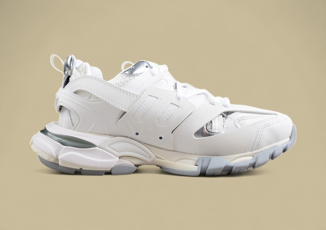 Balenciaga Layered Sneaker in Weiß mit mehrschichtiger Konstruktion.Futuristischer Look trifft auf luxuriösen Komfort und Innovation.