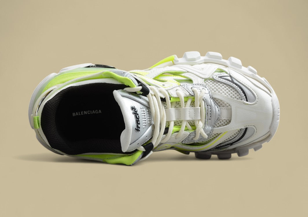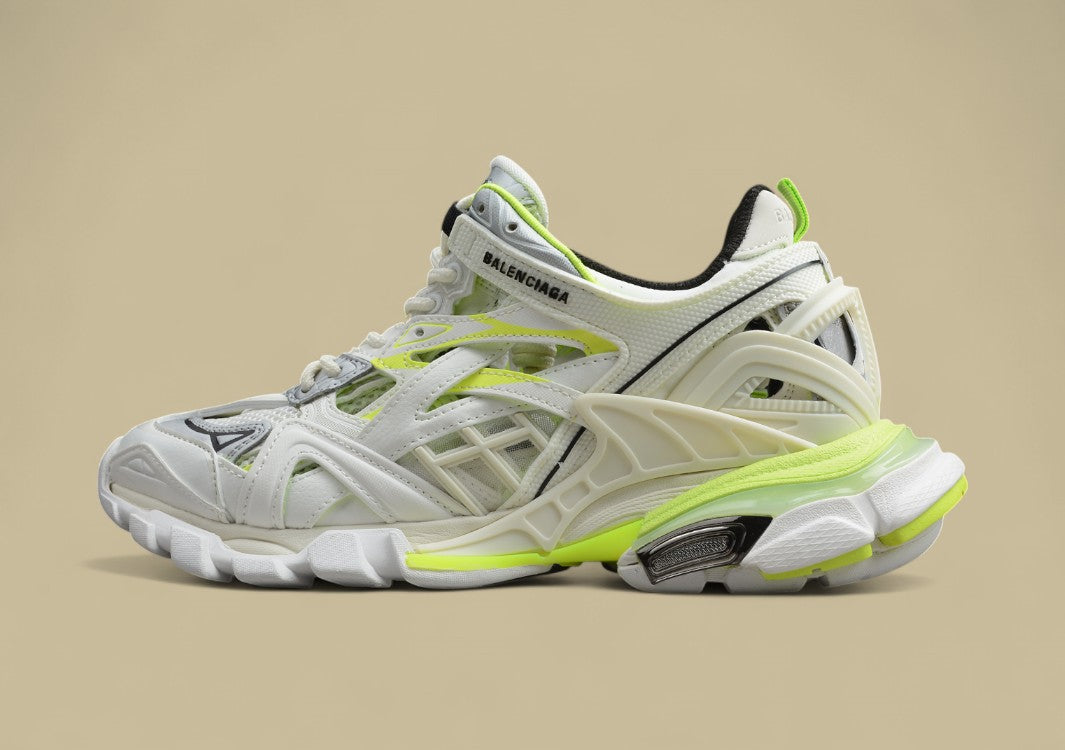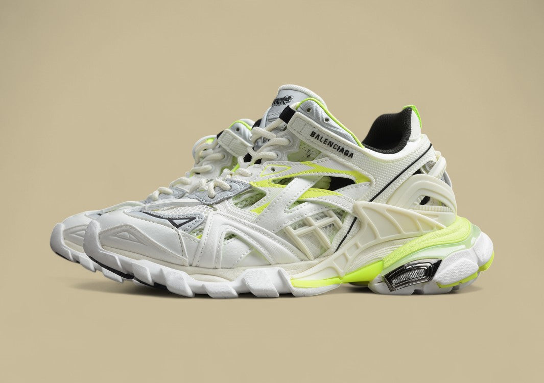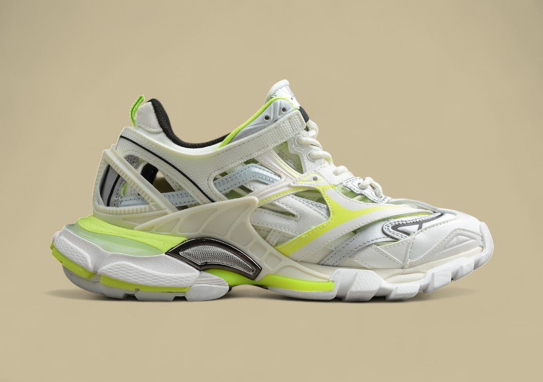 Der Balenciaga White & Neon Yellow Runner Sneaker kombiniert frische Farben mit hohem Komfort und urbanem Style.
