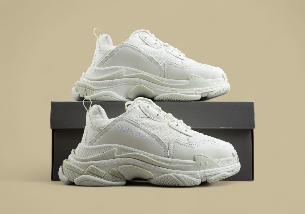 Der Balenciaga White Triple S Sneaker ist ein Klassiker im Bereich des modernen Streetwear-Luxus. Mit seiner markanten, dreifachen Sohle bietet dieser Sneaker nicht nur einen auffälligen, voluminösen Look, sondern auch außergewöhnlichen Komfort und Stabilität. Das elegante Weiß des Sneakers wird durch hochwertige Materialien wie Leder, Mesh und Gummi ergänzt, die für Langlebigkeit und eine perfekte Passform sorgen. Das ikonische Balenciaga-Logo an der Zunge und an der Seite rundet das Design ab und verleiht diesem Sneaker einen exklusiven Touch. Ein unverzichtbares Modell für Sneaker-Enthusiasten, die stilvollen Komfort suchen.