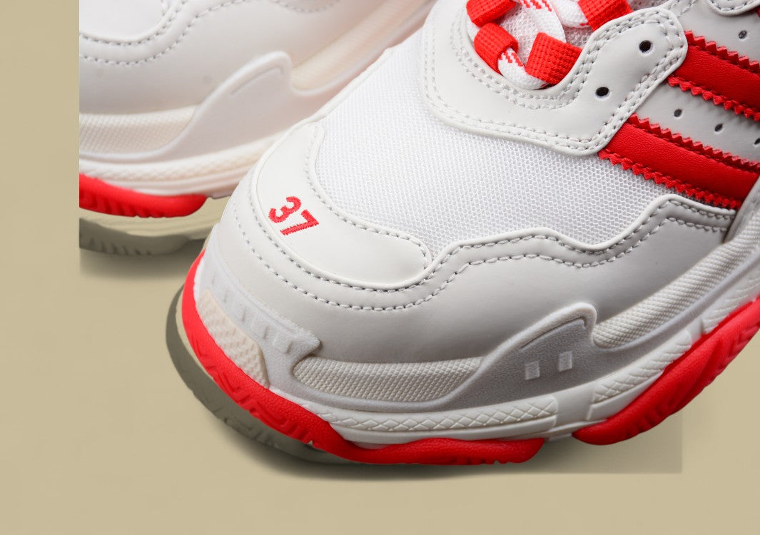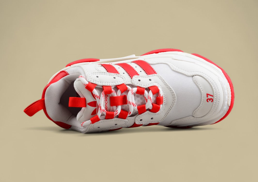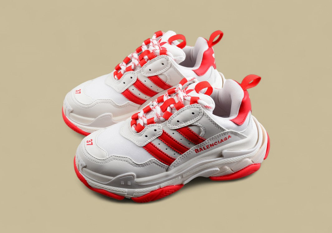 Balenciagas ikonischer Triple S trifft auf adidas' drei Streifen – ein luxuriöser Dad-Sneaker mit sportlichem Flair. Ein Statement-Piece, das Modegrenzen überschreitet und Stil neu definiert.