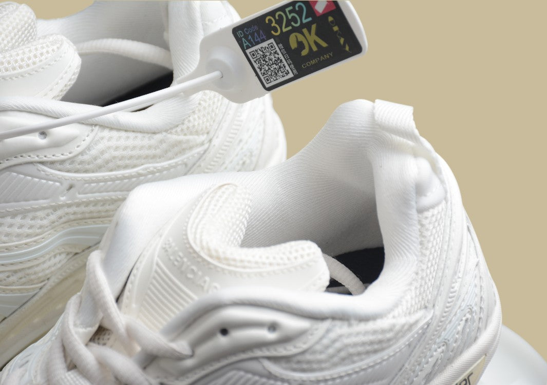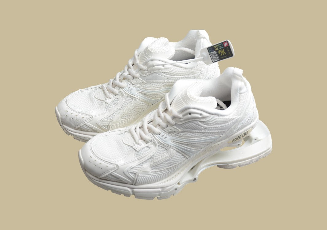 Die Balenciaga X-Pander 6.0 Retro Slingshot Shoes in „Pure White“ sind eine meisterhafte Fusion aus avantgardistischem Design, sportlicher Funktionalität und minimalistischer Eleganz. Komplett in reinem Weiß gehalten, wirkt der Sneaker clean und modern – ideal für progressive Looks mit maximaler Wirkung. Das Obermaterial besteht aus technischem Mesh und synthetischen Overlays, die für Struktur, Atmungsaktivität und stilvolle Tiefe sorgen. Die markante Slingshot-Sohle mit integrierter X-Pander-Federmechanik bietet nicht nur visuelle Extravaganz, sondern auch federnden Gehkomfort und Stabilität bei jedem Schritt. Dezentes Balenciaga-Branding auf Zunge und Seite unterstreicht die exklusive Herkunft, ohne aufdringlich zu wirken. Der „Pure White“ ist die perfekte Wahl für Sneaker-Enthusiasten, die futuristisches Design in seiner puristischsten Form suchen.