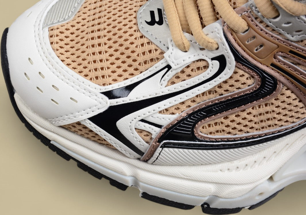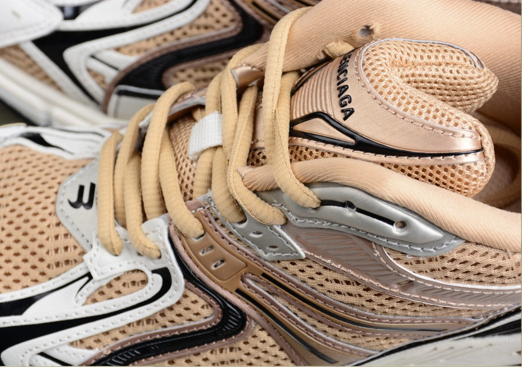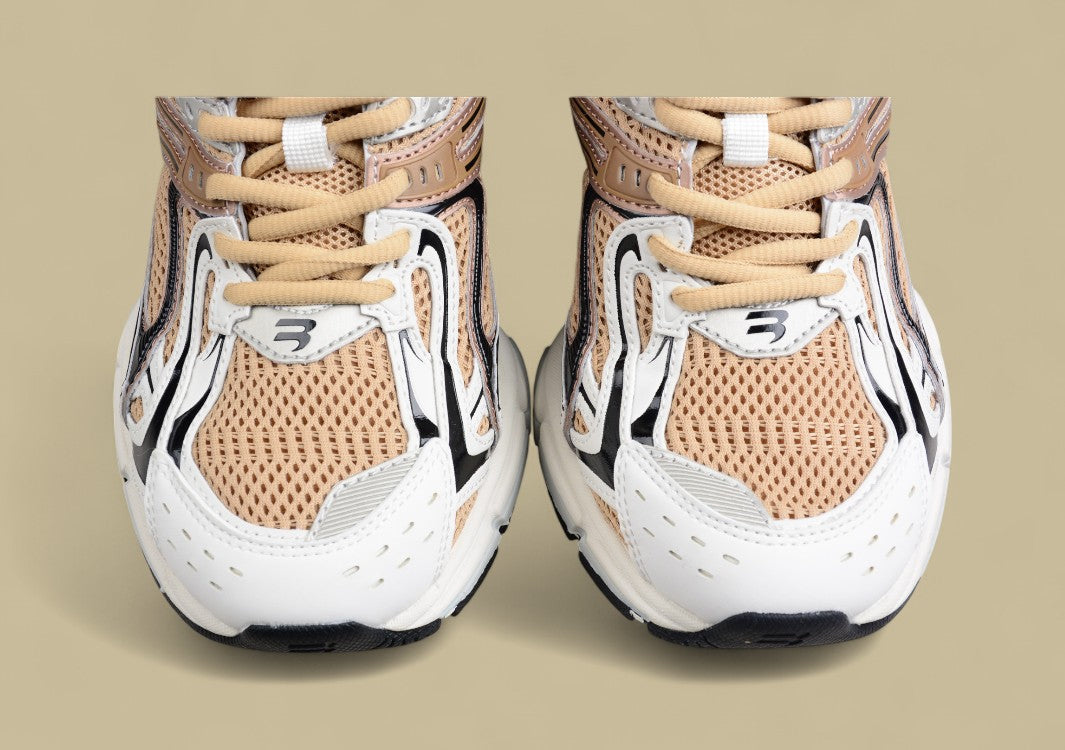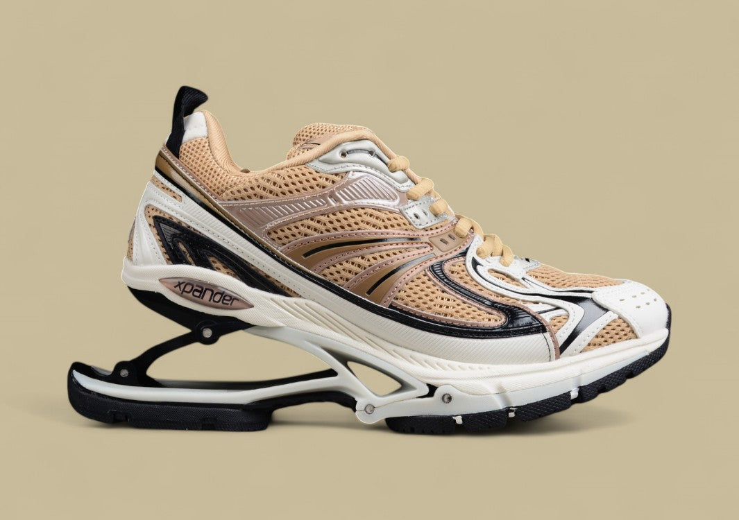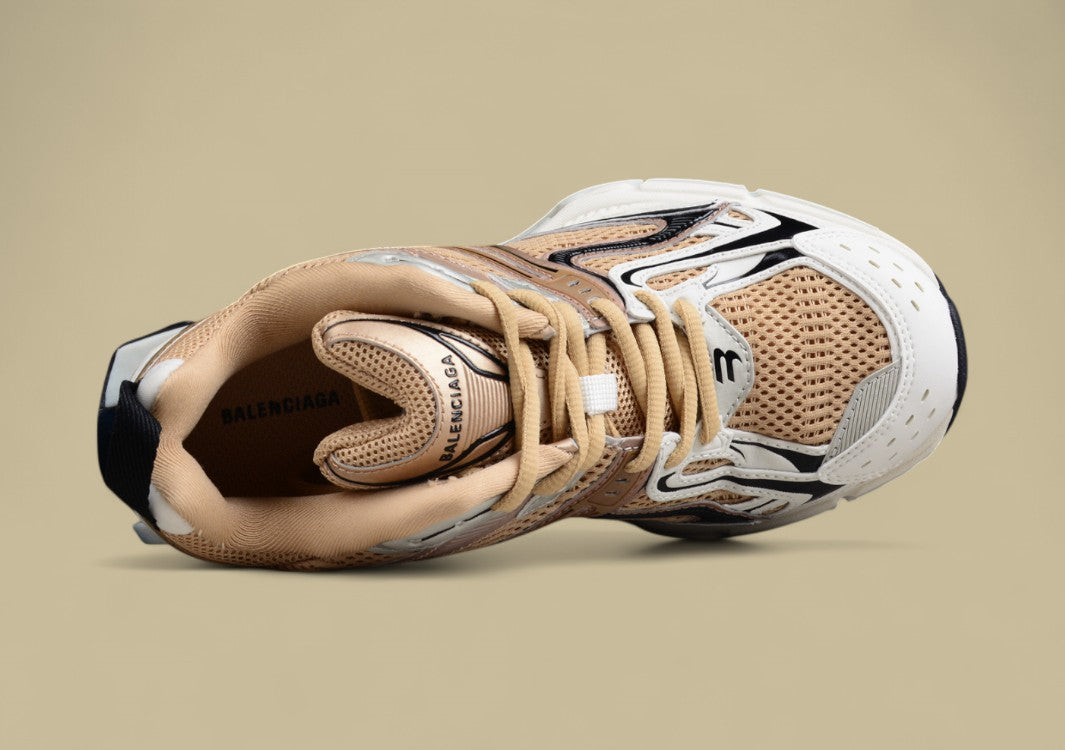 Der Balenciaga X-Pander 6.0 Retro Spring kombiniert technischen Fortschritt mit einem nostalgischen Farbschema. In sanften Beige-, Creme- und Schwarznuancen gehalten, bringt dieser Sneaker frischen Frühjahrsstil mit einem auffälligen High-Tech-Twist. Die atmungsaktive Mesh-Konstruktion sorgt für leichte Belüftung, während geschichtete synthetische Overlays für Halt und visuelle Tiefe stehen. Das Herzstück des Designs: die innovative X-Pander-Fersentechnologie, die bei jedem Schritt eine flexible Federung bietet. Der Retro-Look mit modernem Aufbau macht diesen Schuh zur perfekten Wahl für alle, die markante Innovation mit Vintage-Vibes verbinden wollen.
