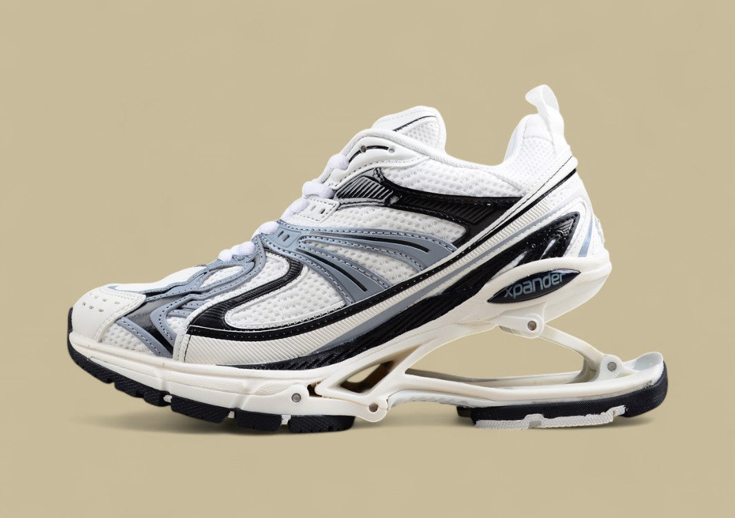 Der Balenciaga X-Pander ist ein visionäres Sneaker-Design, das Retro-Futurismus mit innovativer Technik verbindet. Auffälligstes Merkmal: die eingebaute, federnde Fersenkonstruktion, die jedem Schritt sichtbare Dynamik verleiht. Inspiriert von klassischen Laufschuh-Silhouetten der 90er-Jahre, greift der X-Pander typische Retro-Elemente auf – wie atmungsaktives Mesh, verschachtelte Overlays und eine sportlich-aggressive Linienführung. Dabei wirkt das Design dank der Sprungfeder-Technologie und der dezent gealterten Optik zugleich futuristisch und getragen. Dieser Sneaker ist mehr als nur Schuhwerk – er ist Bewegung, Haltung und High-Fashion in einem. Ideal für alle, die mit jedem Schritt Eindruck hinterlassen wollen.