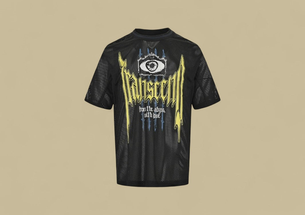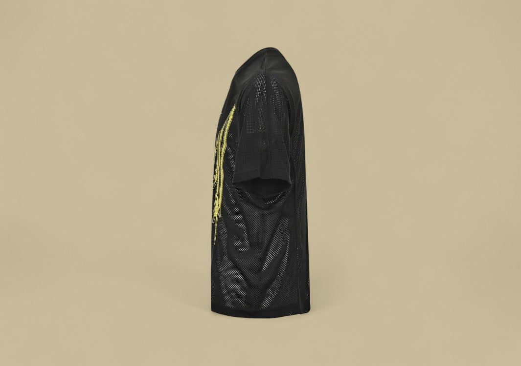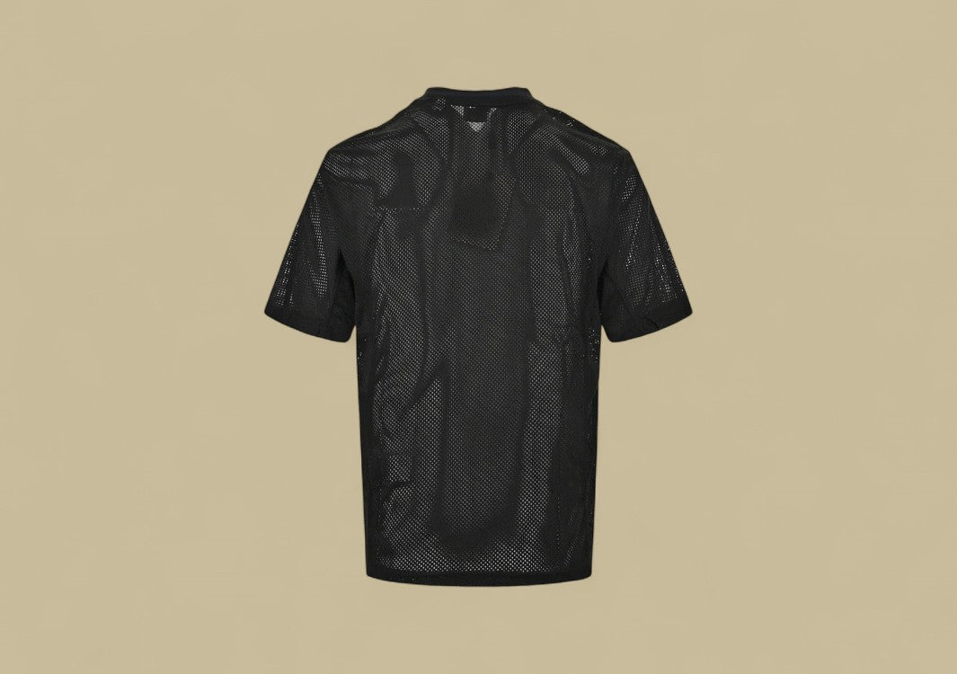 Schwarzes T-Shirt mit gotischem Burberry-Logo und Mesh-Details.Düster, modern und kompromisslos stylisch.