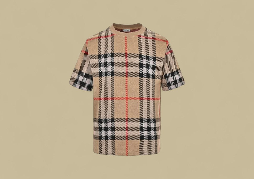 Strick-T-Shirt mit klassischem Archive Beige Check.Ein Stück Burberry-Heritage – modern, hochwertig, unverkennbar.