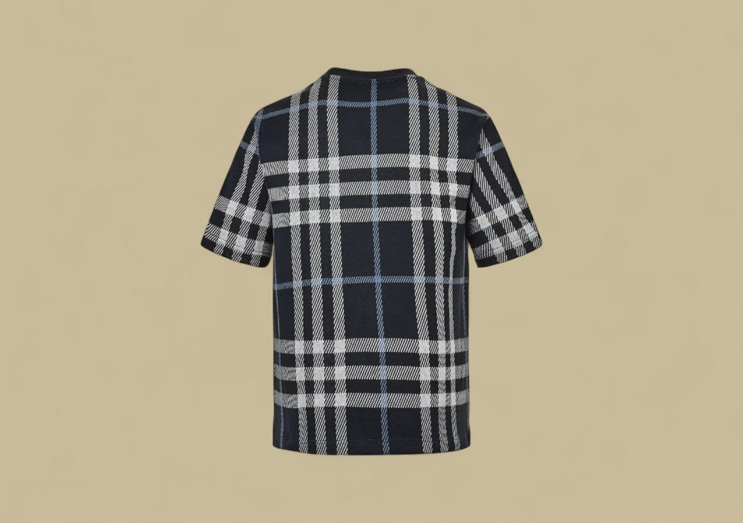 Strick-T-Shirt mit Burberry-Karomuster in Navy Check.Elegant, bequem und ein moderner Klassiker.