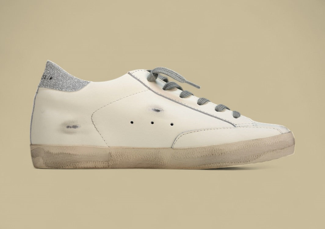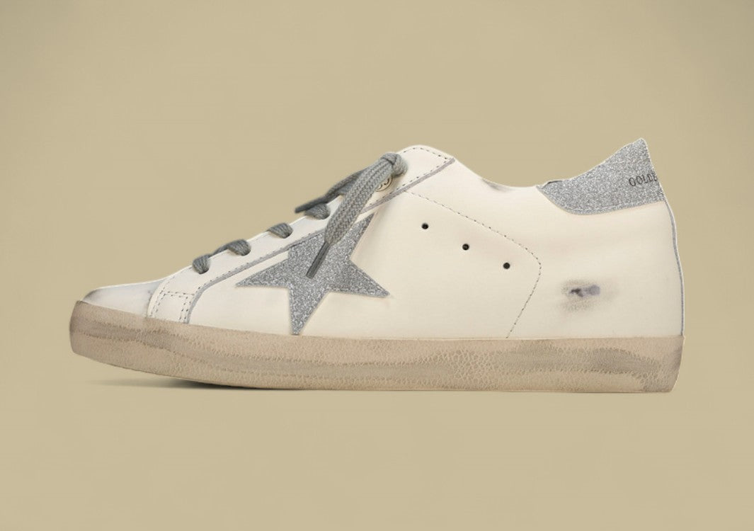 Weiße Leder-Sneaker mit grauen Details und ikonischem Used-Look.Lässig, hochwertig und ein echter Golden Goose Klassiker.