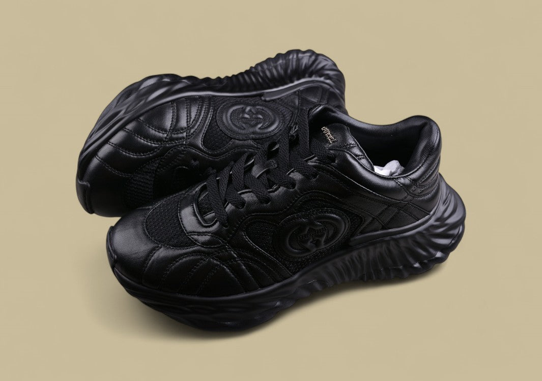 Die Gucci Black Sculpted Sneakers bringen futuristisches Design auf ein neues Level. Mit ihrer skulpturalen Silhouette, gefertigt aus schwarzem Premiumleder, und dem tonal eingearbeiteten GG-Muster wirken diese Runners modern, kraftvoll und urban. Die markante Formgebung und die strukturierte Sohle unterstreichen den progressiven Charakter des Schuhs, während die monochrome Farbgebung für eine elegante Zurückhaltung sorgt. Ideal für alle, die Streetstyle mit High-Fashion verbinden wollen – innovativ, komfortabel und unverkennbar Gucci.