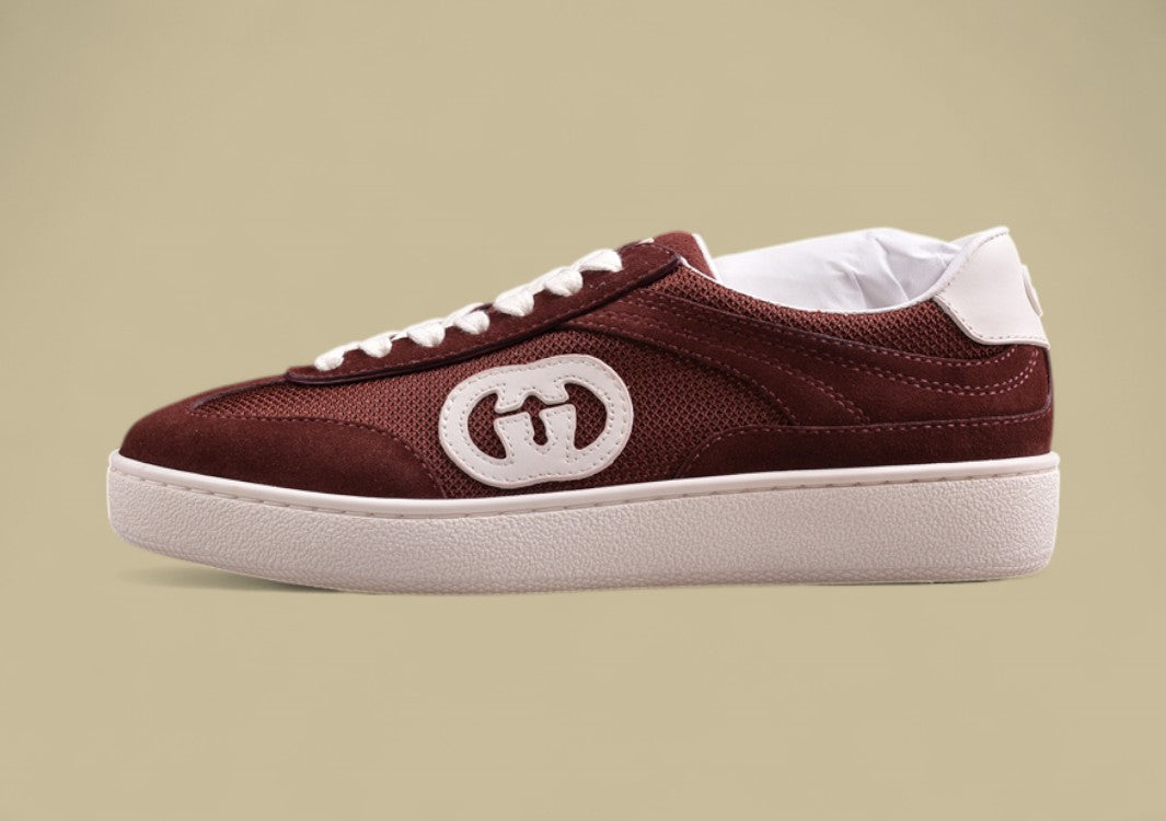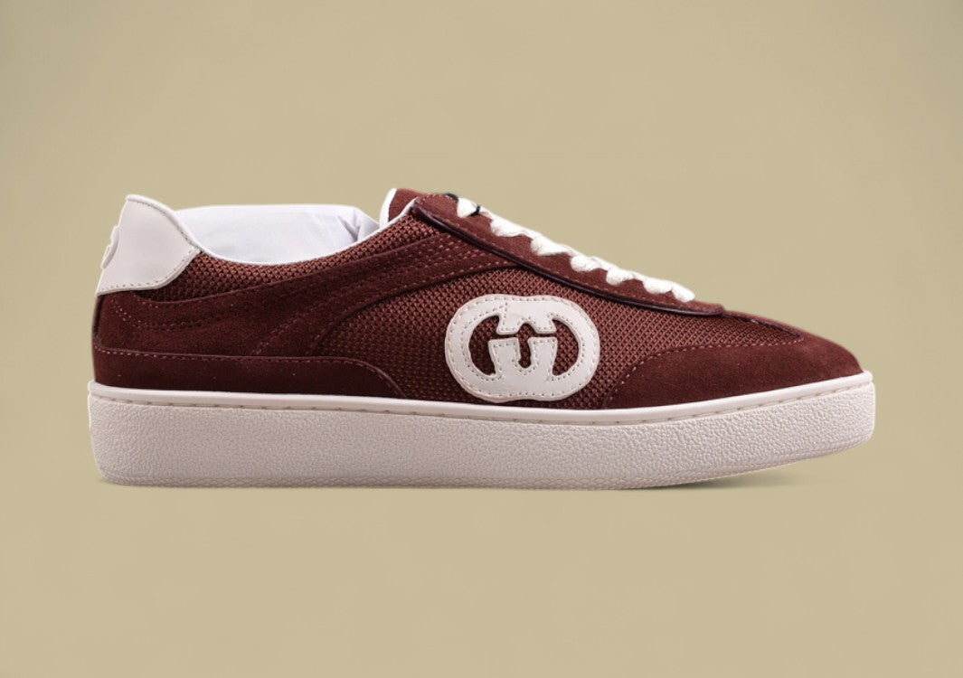 Die Gucci Burgundy Retro Sneakers bringen kräftige Farbe und ikonisches Design in perfekter Harmonie zusammen. In einem tiefen Burgunderrot gehalten, setzen diese Low-Top-Sneaker ein stilvolles Statement mit einem auffälligen Gucci-Logo in Kontrastfarbe. Die Vintage-inspirierte Silhouette kombiniert klassische Linien mit moderner Raffinesse, während hochwertige Materialien und eine weiche Innensohle für exzellenten Tragekomfort sorgen. Ideal für Fashion-Liebhaber, die Farbe bekennen und dennoch zeitlosen Stil bewahren möchten.