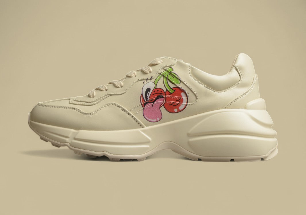 Beigefarbene Gucci Rhyton Sneakers mit markanter Sohle im Monochrom Look. Zurückhaltend, edel und absolut im Trend.