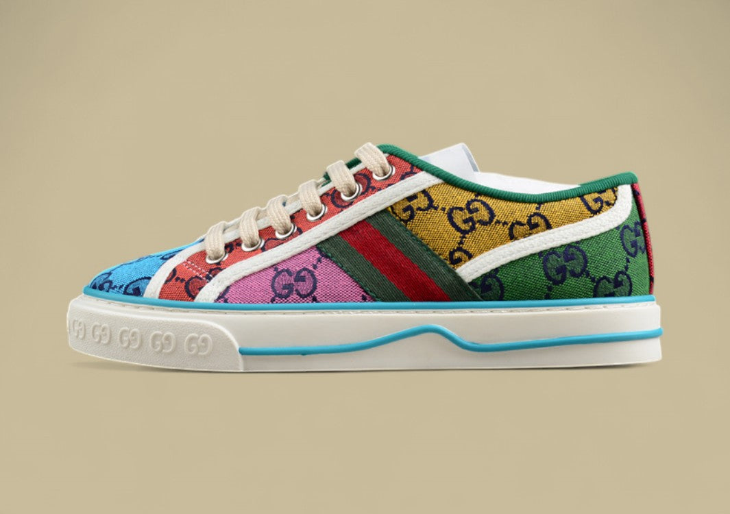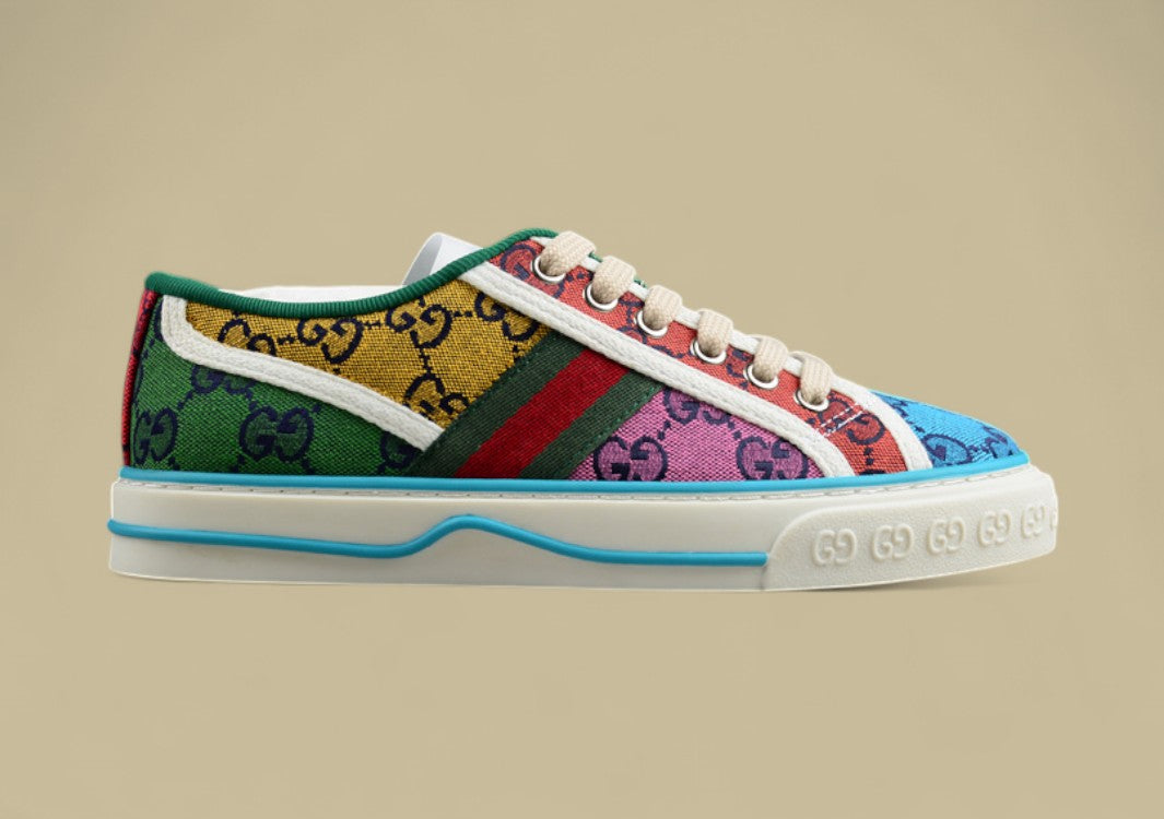 Gucci Tennis Sneaker mit farbigem GG-Monogramm auf klassischem Design. Bunt, markant und ein echter Hingucker.