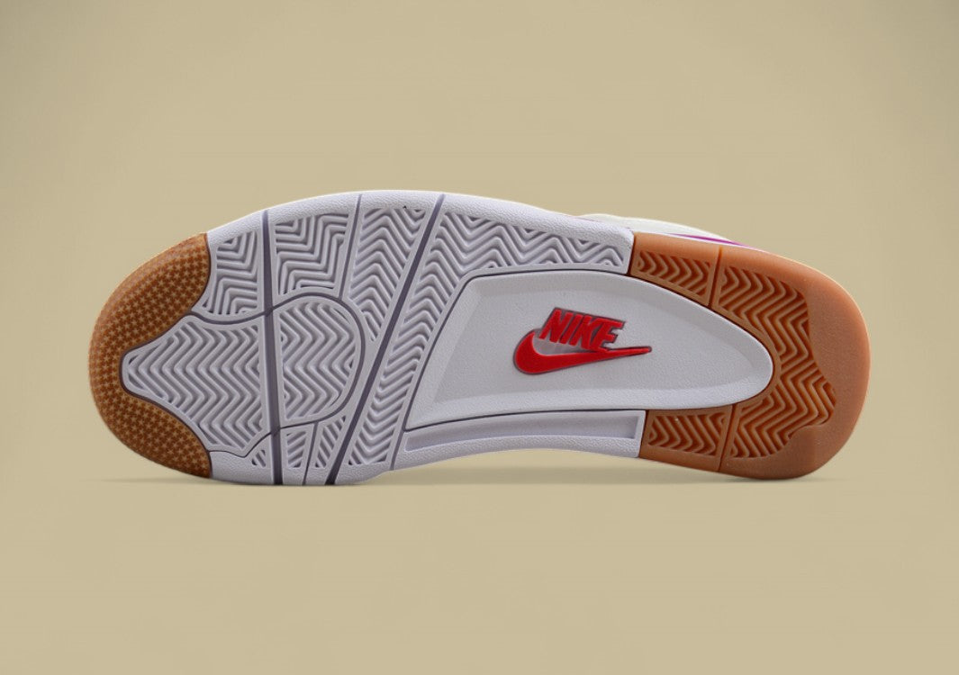 Der Air Jordan 4 “Sapphire” White/Purple Joint Edition kombiniert die ikonische AJ4-Silhouette mit einem frischen, modernen Farbschema. Das Obermaterial besteht aus glattem weißem Leder, das mit kräftigen lila Akzenten an Ösen, Innenfutter, Laufsohle und Branding stilvoll kontrastiert wird. Die Farbkombination erinnert an Edelstein-Töne – daher der Name „Sapphire“. Typische Jordan-Details wie das Flügel-Design, Mesh-Einsätze und die sichtbare Air-Dämpfung bleiben erhalten und sorgen für klassischen Komfort und Stabilität. Die Joint Edition hebt sich durch besondere Materialqualität und Verarbeitung ab, was sie zu einem Highlight für Sneaker-Sammler und Style-Fans macht. Ob auf der Straße oder in der Vitrine – dieser AJ4 verbindet Retro-Flair mit edlem Auftritt.