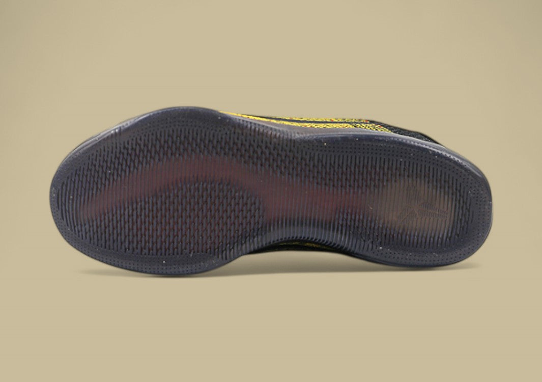 Der Nike Kobe 11 Elite Low "Bruce Lee" ist eine Hommage an Kobes Idol, den legendären Kampfkünstler Bruce Lee – und eine Fortsetzung des beliebten Bruce-Lee-Themas aus der Kobe-Serie. Das Flyknit-Obermaterial in University Gold strahlt Energie und Stärke aus, während rote Akzente an die berühmten Kratzspuren aus Enter the Dragon erinnern. Schwarze Details sorgen für Kontrast und Tiefe. Technisch überzeugt der Schuh mit reaktionsfreudiger Zoom Air-Dämpfung im Fersenbereich, einer leichten, flexiblen Low-Top-Silhouette und präziser Stabilität. Ein ikonischer Look für Spieler, die Mut, Kontrolle und Mamba-Mentalität verkörpern.