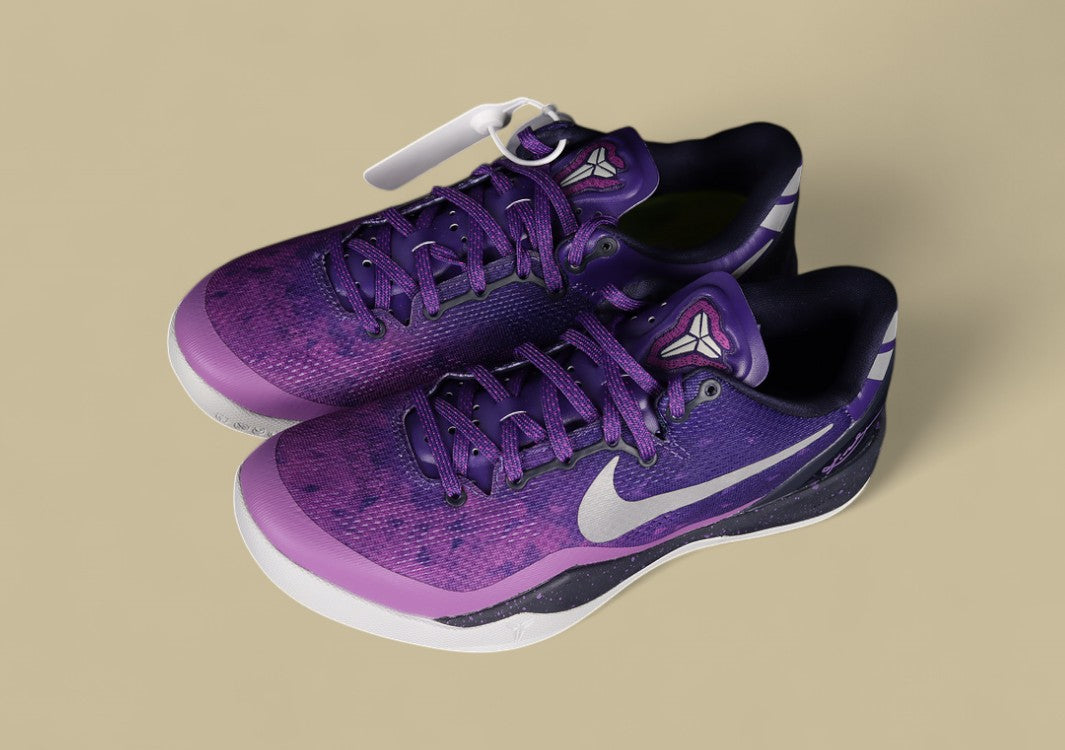 Kobe 8 System „Playoff“ in Lila mit platinfarbenen und dunkelblauen Highlights.Stabil, agil und gemacht für die große Bühne.