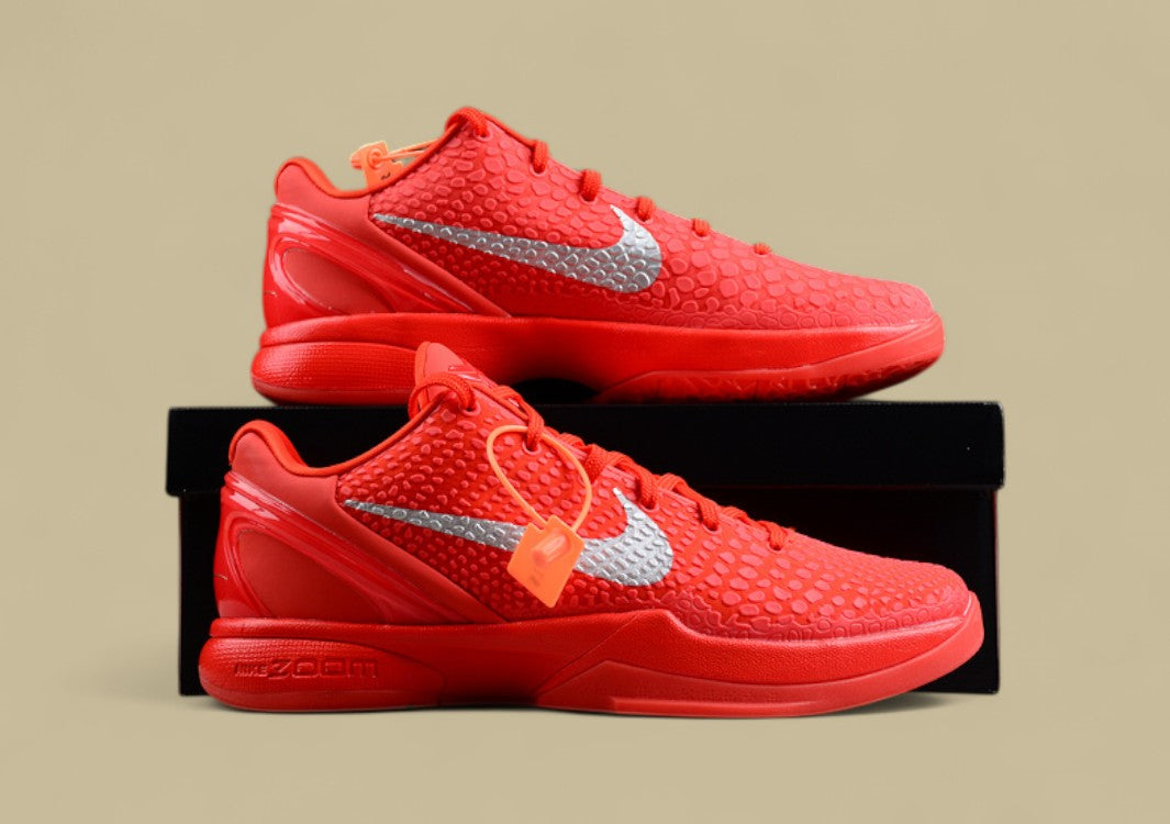 Kobe VI Pro in Rot mit grauen Details – dynamisch und leistungsstark.Leicht, flexibel und gemacht für explosive Moves.