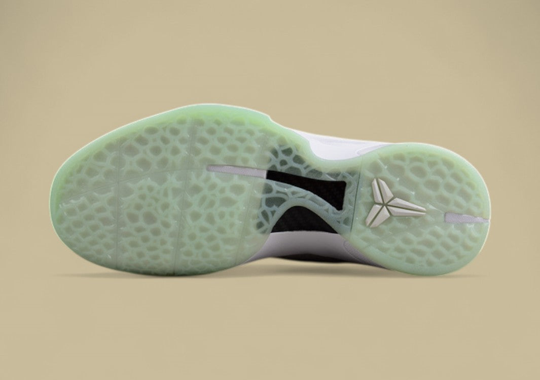Kobe VI Protro in Weiß mit grauen und roten Highlights.Leicht, flexibel und gemacht für präzise Bewegungen auf dem Court.
