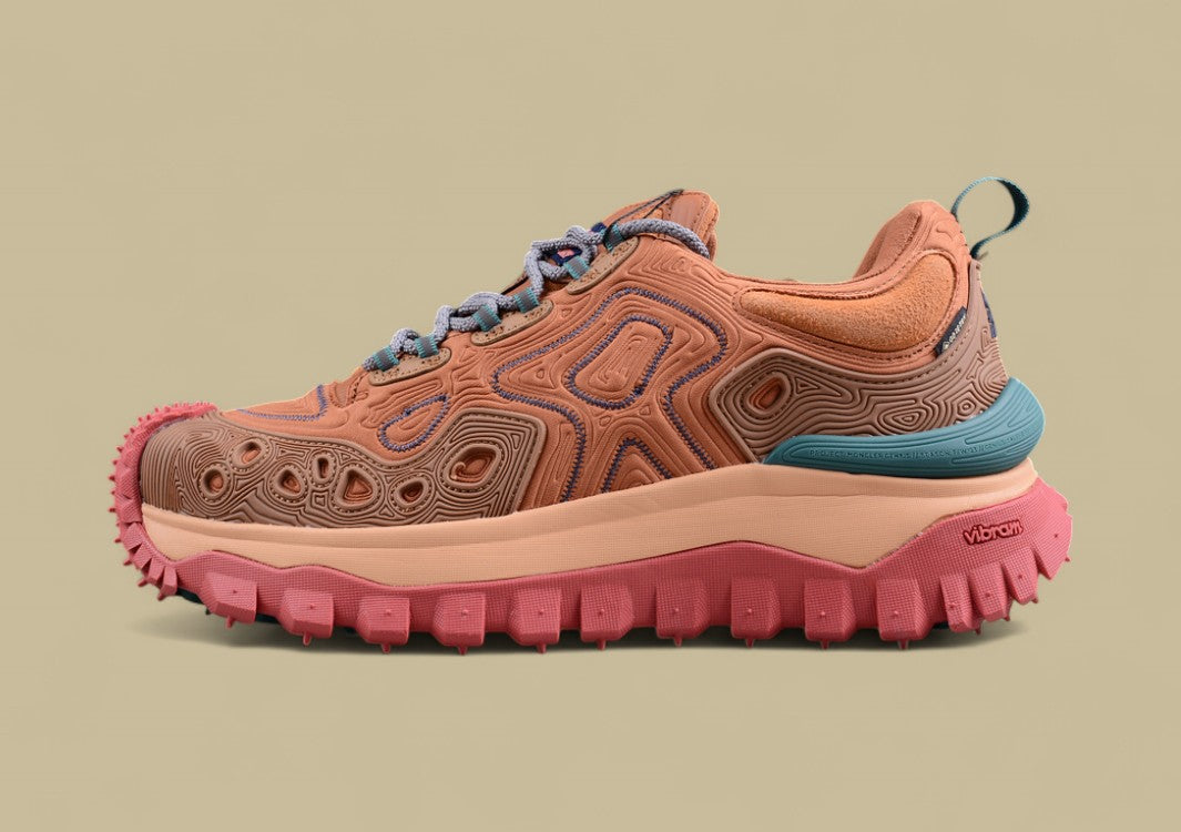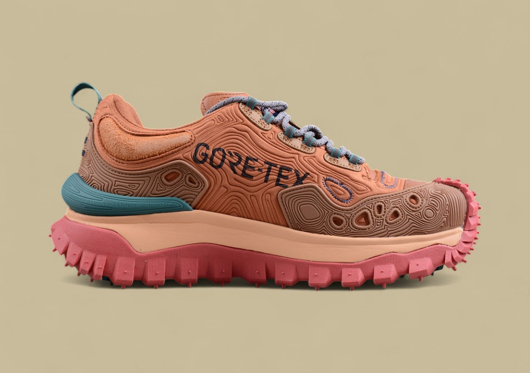 Der Moncler Trailgrip GTX Low in Clay Orange mit Topo-Design bringt Outdoor-Funktionalität und künstlerisches Terrain-Design in Einklang. Die auffällige Farbe in Tonerde-Orange wird durch ein topografisch inspiriertes Muster ergänzt, das die Struktur von Landschaften stilisiert und dem Schuh eine einzigartige visuelle Dynamik verleiht. Dank GORE-TEX®-Membran ist der Sneaker wasserdicht und atmungsaktiv – ideal für wechselhafte Bedingungen. Die Vibram®-Außensohle sorgt für hervorragenden Grip und Stabilität, selbst auf anspruchsvollem Untergrund. Ein technischer Sneaker mit modischem Anspruch, der Abenteuerlust und Stil vereint.