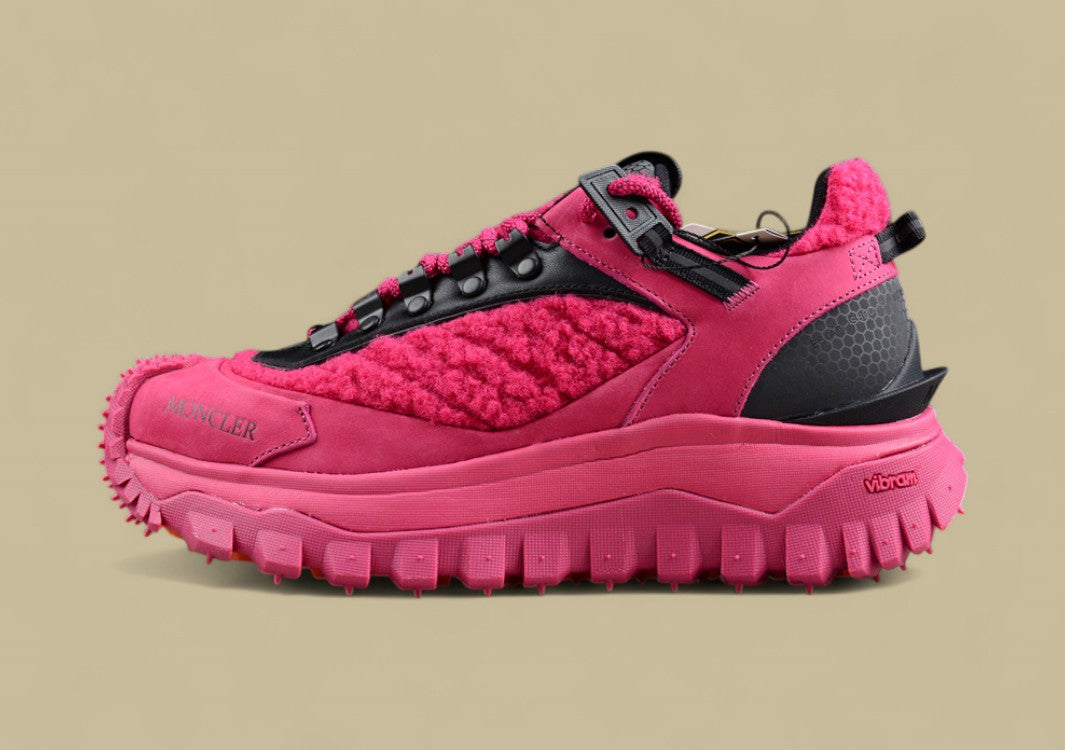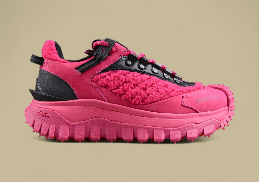 Der Moncler Trailgrip GTX Low in Fuchsia ist ein kraftvolles Fashion-Statement mit technischer Outdoor-Kompetenz. Das leuchtend pinke Obermaterial zieht alle Blicke auf sich und verleiht dem Sneaker eine energiegeladene, selbstbewusste Ausstrahlung. Ausgestattet mit einer GORE-TEX®-Membran ist der Schuh vollständig wasserdicht und atmungsaktiv – bereit für jede Wetterlage. Die griffige Vibram®-Sohle sorgt für Stabilität und Traktion, ob auf nassem Asphalt oder unebenem Terrain. Dieser Sneaker vereint mutige Farbwahl mit Moncler-typischer Premium-Performance – perfekt für alle, die Stil und Funktion ohne Kompromisse wollen.