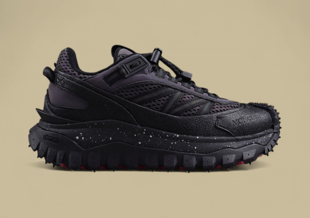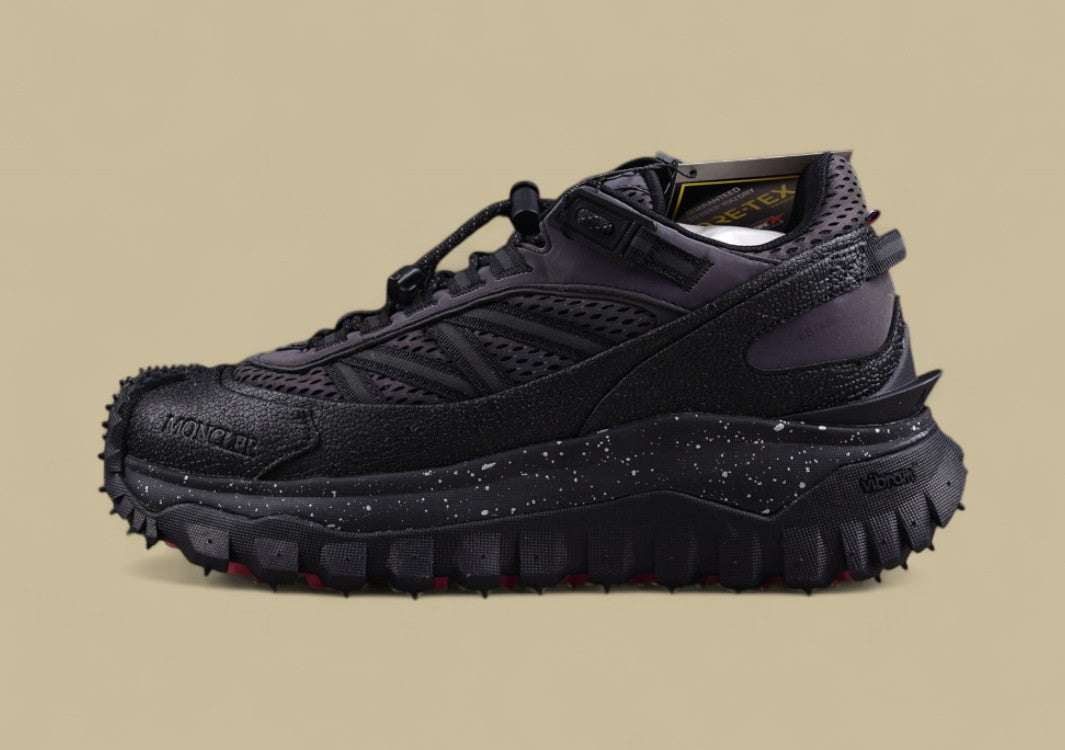 Blackout trifft Funktion: Der Trailgrip Lite 2 Low GTX mit GORE-TEX® und gesprenkelter Sohle bietet stylischen Wetterschutz und zuverlässige Moncler-Performance.