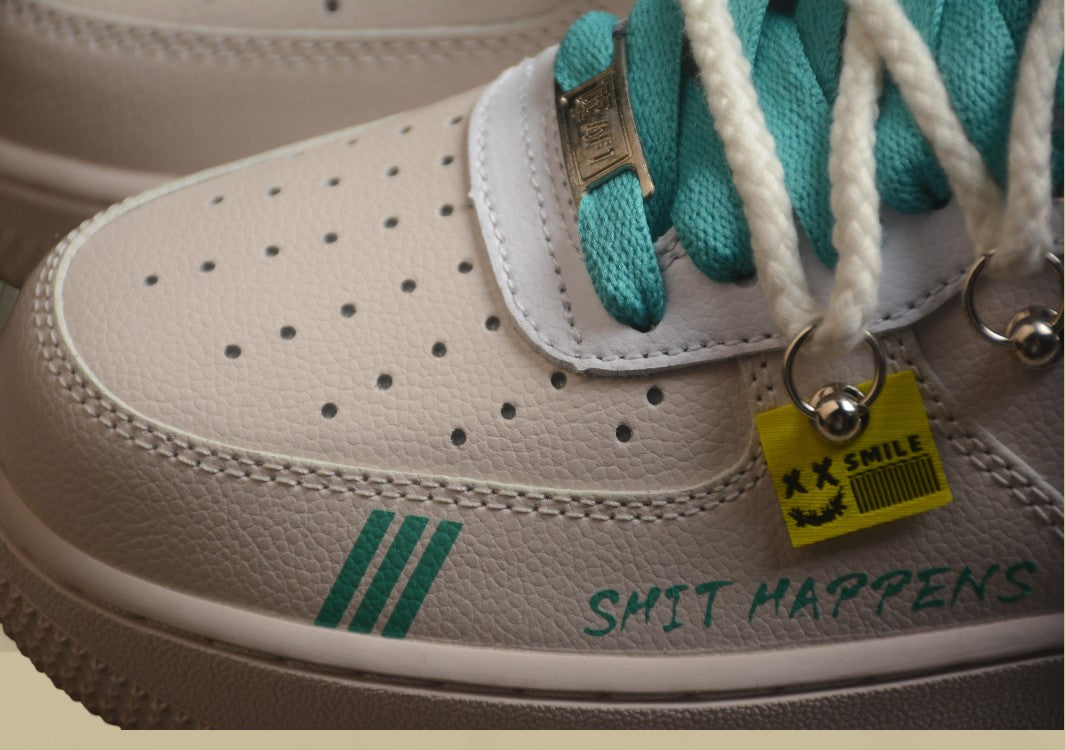 Der Nike Air Force 1 Low „Beige Graffiti“ GZ-Replik bringt urbanen Streetstyle und klassische Sneaker-Form in perfekte Balance. Das Obermaterial besteht aus hochwertigem Kunstleder in einem sanften Beigeton und wird durch auffällige Graffiti-Prints in Schwarz, Weiß und kontrastierenden Farben veredelt. Die Grafiken verleihen dem Schuh eine rebellische, kreative Ausstrahlung – perfekt für individuelle Styles mit urbanem Charakter. Die perforierte Zehenbox sorgt für Atmungsaktivität, während die klassische Air-Sohle stabilen Tragekomfort über den Tag bietet. Eine robuste Gummisohle und die flache Schnürung runden den funktionalen Aufbau ab. Diese GZ-Replik vereint kreative Freiheit mit zeitloser Nike-Silhouette – ideal für Sneaker-Liebhaber, die Statements setzen möchten.