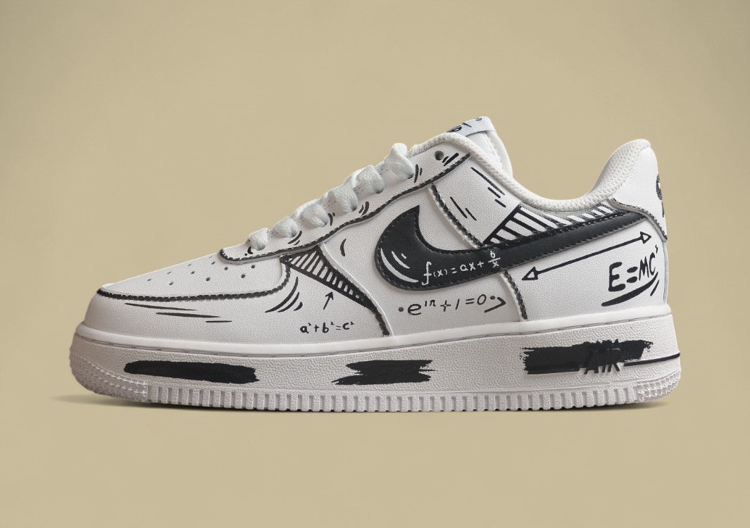 Mathe trifft Style: Der AF1 mit skizzierten Formeln und kreativen Kritzeleien. Ein smarter Look mit nerdigem Flair.