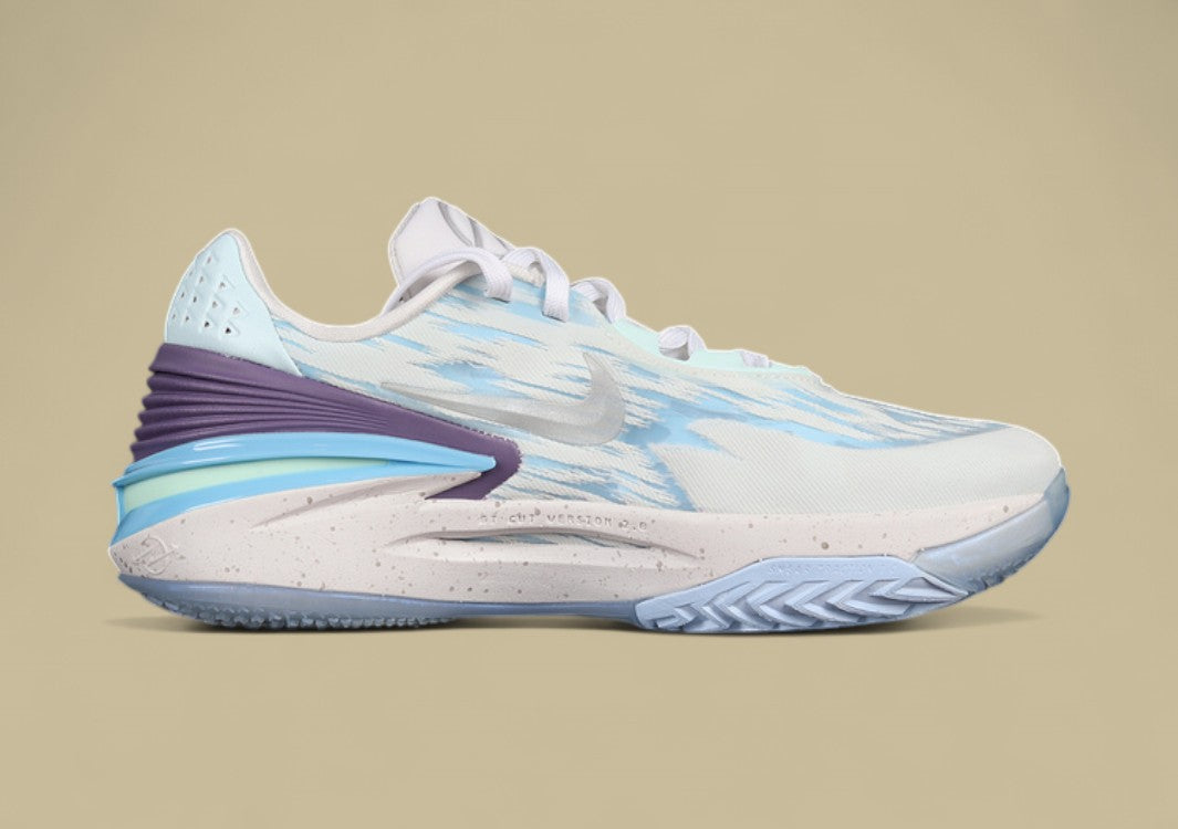 Der Nike Air Zoom G.T. Cut 2 „Dare to Fly“ in Sky Blue mit Light Grey und lila Akzenten verkörpert Leichtigkeit, Vision und das Streben nach dem nächsten Level. Dieser Colorway steht sinnbildlich für das Loslassen von Limitierungen – visuell wie spielerisch. Mit seiner tief liegenden Zoom Air Strobel-Dämpfung und der reaktionsfreudigen React-Einlegesohle bietet dieser Performance-Schuh ein unglaublich dynamisches Laufgefühl bei voller Kontrolle. Das atmungsaktive Obermaterial passt sich flexibel dem Fuß an und sorgt für sicheren Halt bei schnellen Richtungswechseln und Stops. Die EP-Außensohle bietet besonders hohe Strapazierfähigkeit für den Einsatz auf Outdoor-Courts. „Dare to Fly“ lädt dich ein, über dich hinauszuwachsen – mit Stil, Speed und Präzision.