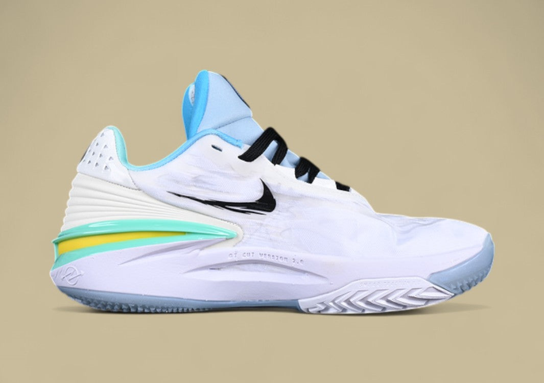 Der Nike Air Zoom G.T. Cut 2 EP 'Unlock Your Space' in Weiß und Schwarz mit Light Mint Green-Akzenten vereint futuristischen Style mit hochentwickelter Performance. Der cleane, kontrastreiche Look wird durch frische Minzgrün-Details ergänzt, die dem Design Leichtigkeit und Modernität verleihen. Die tief liegende Zoom Air Strobel-Dämpfung sorgt für maximale Reaktionsfähigkeit und federndes Laufgefühl, während die React-Einlegesohle zusätzliche Energierückgabe bietet. Das atmungsaktive Obermaterial bietet sicheren Halt und Flexibilität für schnelle Richtungswechsel. Die besonders strapazierfähige EP-Außensohle ist für maximale Traktion auf Outdoor-Courts konzipiert. Diese Edition inspiriert dazu, dein Spiel auf ein neues Level zu heben – mit Raum, Freiheit und Kontrolle.