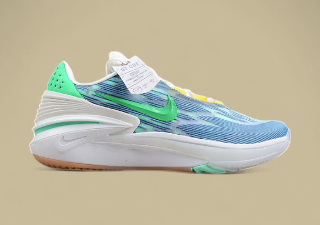Der Nike Air Zoom G.T. Cut 2 in Grau mit blauen und grünen Akzenten vereint moderne Zurückhaltung mit sportlicher Frische. Der neutrale Grauton sorgt für einen cleanen, fokussierten Look, während lebendige Blau- und Grüntöne gezielte Akzente setzen – perfekt für Spieler:innen, die Understatement mit Charakter verbinden wollen. Mit Zoom Air Strobel-Dämpfung und einer reaktionsfreudigen React-Einlegesohle ausgestattet, bietet der Schuh ein dynamisches, leichtes Tragegefühl mit exzellenter Energierückgabe. Das atmungsaktive Obermaterial unterstützt Stabilität und Bewegungsfreiheit bei schnellen Cuts und Richtungswechseln. Die robuste Außensohle sorgt für zuverlässigen Grip auf Indoor- und Outdoor-Courts. Technisch stark, optisch souverän – für ein Spiel, das präzise und kontrolliert bleibt.