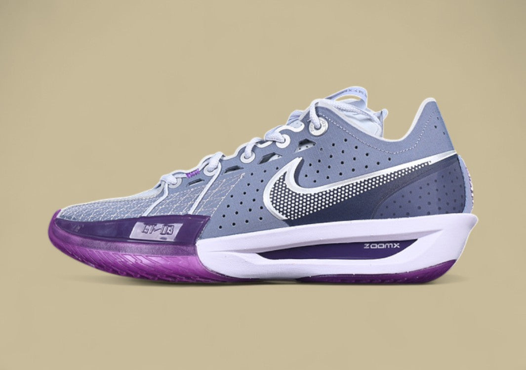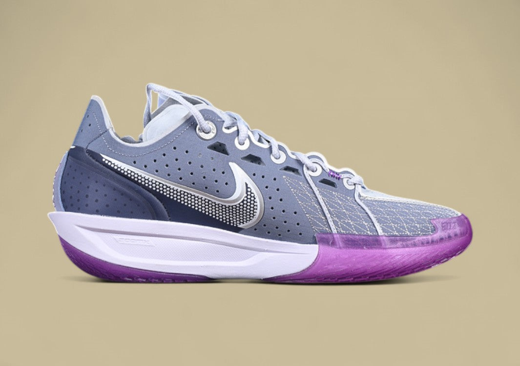 Der Nike Air Zoom G.T. Cut 3 EP ist gemacht für schnelle Richtungswechsel, explosive Cuts und maximale Kontrolle auf dem Court. In einem eleganten Ashen Slate und Football Grey gehalten, bringt dieser Schuh mit Barely Grape-Nuancen und schimmernden Metallic Silver-Akzenten nicht nur Leistung, sondern auch Stil auf Spitzenniveau. Die neu entwickelte, durchgehende ZoomX-Mittelsohle sorgt für ein unglaublich reaktionsfreudiges Laufgefühl und federleichte Dämpfung – perfekt für Spieler:innen, die das Spiel diktieren wollen. Die EP-Version mit besonders abriebfester Außensohle ist ideal für den Einsatz auf Außenplätzen geeignet. Dank innovativer Traktion und stabiler Passform unterstützt dich der G.T. Cut 3 EP bei jedem Antritt, jedem Stop und jeder Bewegung, die den Unterschied macht.