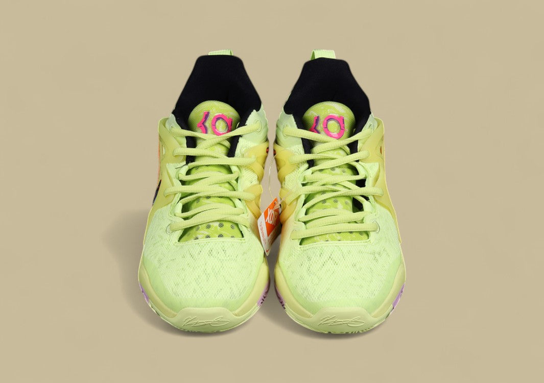 Die Nike KD Basketballschuhe in Bright Volt sind ein visuelles Feuerwerk und ein Performance-Wunder zugleich. Das neonleuchtende Upper zieht sofort alle Blicke auf sich und sorgt für maximale Sichtbarkeit auf dem Court. Gepaart mit einer farbenfrohen, mehrfarbigen Außensohle, bringt der Schuh nicht nur Energie in jedes Spiel, sondern auch einzigartigen Style. Der auffällige Grafik-Swoosh in leuchtenden Farben verstärkt das kreative, mutige Design. Trotz der auffälligen Optik steht Funktionalität im Vordergrund: Das leichte, atmungsaktive Obermaterial und die reaktive Zoom Air Dämpfung bieten Komfort, Stabilität und explosive Beweglichkeit für Spieler, die das Spiel dominieren wollen – in jeder Hinsicht.