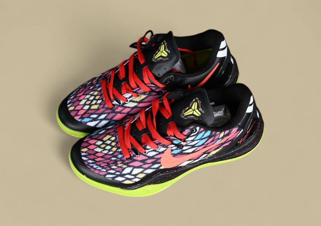 Die Nike Kobe Black Orange Green Red Replica-Sneaker begeistern mit einem farbenfrohen Mosaik-Obermaterial, das künstlerische Energie und Individualität ausstrahlt. Die Kombination aus Schwarz, Orange, Grün und Rot schafft ein visuelles Feuerwerk, das durch die auffällige Volt-gelbe Außensohle und den passenden Swoosh kraftvoll ergänzt wird. Das Low-Top-Design ermöglicht uneingeschränkte Beweglichkeit und sorgt für agiles, schnelles Spiel. Atmungsaktive Zonen und weiche Polsterung bieten hohen Tragekomfort, während die reaktionsfreudige Zoom-Dämpfung optimale Energierückgabe liefert. Dieses Replica-Modell ist gemacht für Spieler, die Kreativität, Stil und technische Leistung auf dem Spielfeld vereinen wollen.