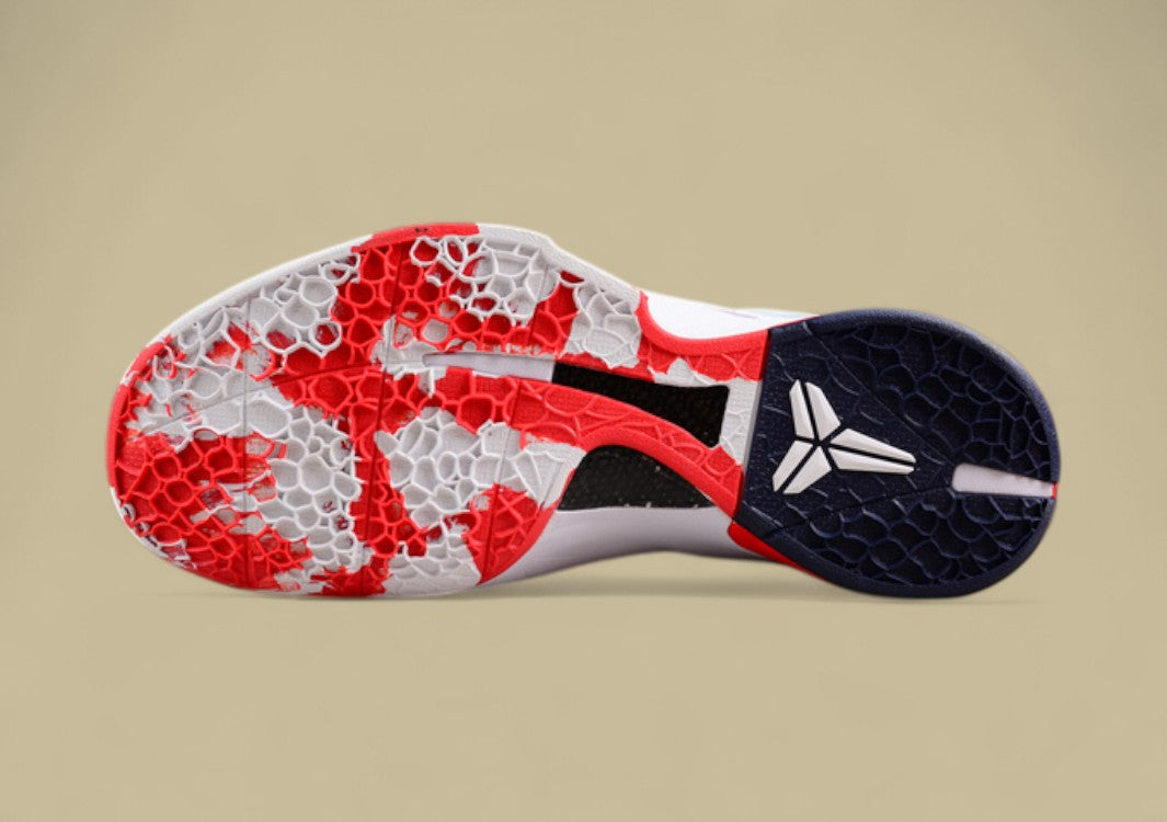 Replica-Kobe mit Schuppenstruktur und patriotischem Farbspiel in Blau, Weiß und Rot. Stark im Look, präzise im Spiel – für mutige und dynamische Auftritte.