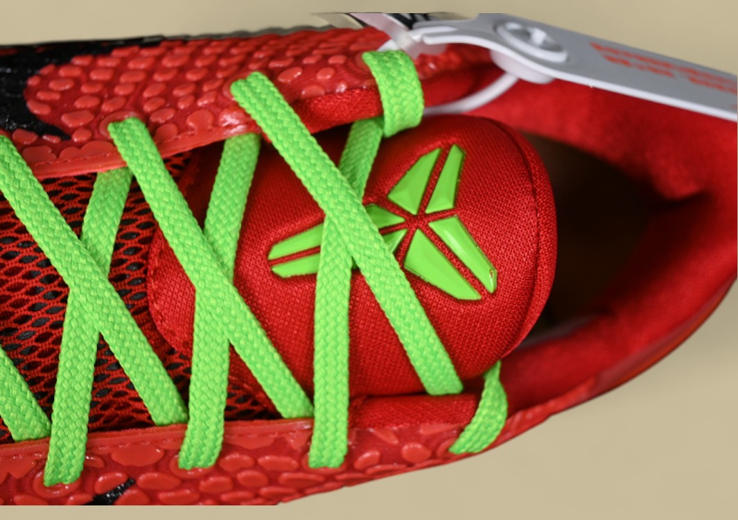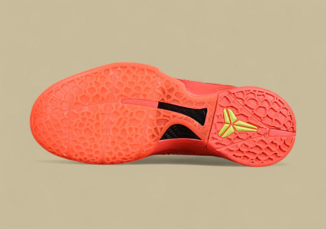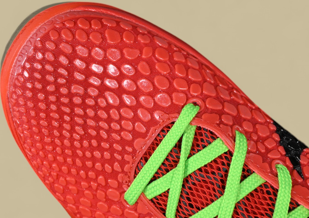 Replica-Kobe mit grünem Schuppendesign und grellen Neon-Details. Starkes Court-Feeling trifft auf auffälligen Signature-Look.