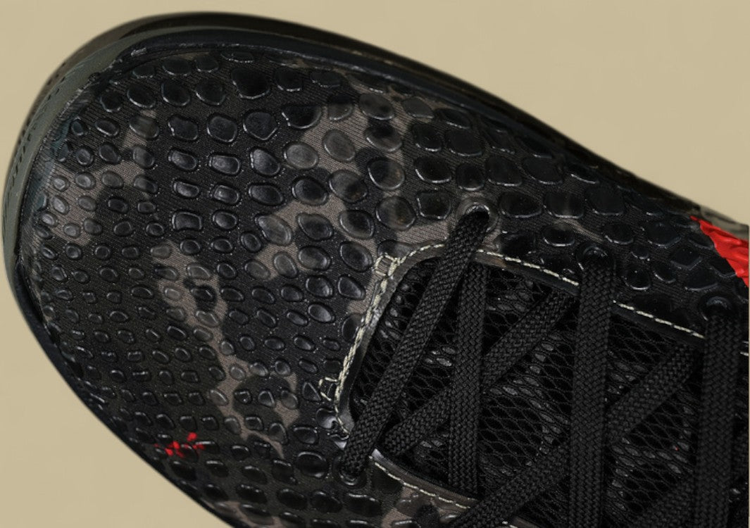 Replica-Kobe mit Schlangenhaut-Optik, Crimson-Swoosh und auffälligem Farbmix. Stark im Look, schnell im Spiel – perfekt für stylische Dominanz.