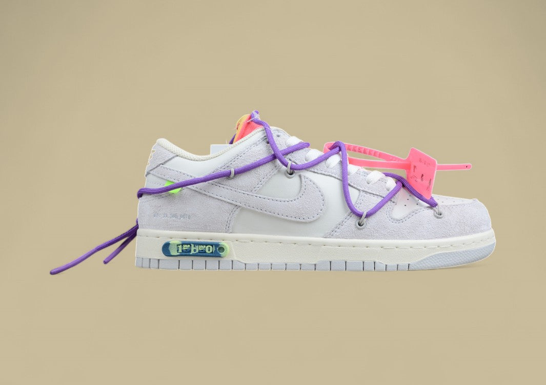 Der Nike SB Dunk Low “The 50” aus der legendären Dunk Series von Off-White bringt klassischen Streetstyle, skatetaugliche Performance und kunstvolles Design in perfekter Harmonie zusammen. Diese Replika greift den charakteristischen Look der “The 50”-Kollektion auf – mit einem Mix aus glattem Leder und Wildleder in neutralen Grautönen sowie auffälligen Farbdetails bei Schnürsenkeln, Zugkordeln oder Nummernplaketten. Die doppelte Schnürung mit kontrastierenden Zugbändern, eine offene Schaumstoffzunge und der charakteristische Zip-Tie sorgen für den typischen Off-White-Touch. Das cleane Design ist gleichzeitig wandelbar und alltagstauglich – ein echtes “All-Match”-Modell, das zu sportlichen und lässigen Outfits gleichermaßen passt. Die bewährte SB-Dunk-Low-Silhouette steht für Komfort, Stabilität und Style auf und abseits des Skateboards. Diese Replika ist die ideale Wahl für alle, die eine starke Mischung aus klassischem Dunk-Erbe und moderner Designhandschrift suchen.