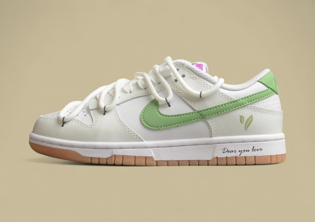 Erfrischend wie eine Tasse grüner Tee – der Nike Dunk Low „Spring and Summer Series – Green Tea“ bringt Leichtigkeit und Natürlichkeit in deinen Look. Die harmonische Kombination aus frischem Grün und reinem Weiß erinnert an Frühlingserwachen und sommerliche Klarheit. Minimalistisch, aber stilvoll, verkörpert dieser Dunk mit seinem SB-inspirierten Aufbau, der griffigen Sohle und dem angenehmen Tragegefühl den perfekten Alltagsbegleiter für warme Tage. Dezente Details und hochwertige Materialien runden das Design ab – ideal für alle, die Natürlichkeit mit urbanem Stil verbinden möchten.