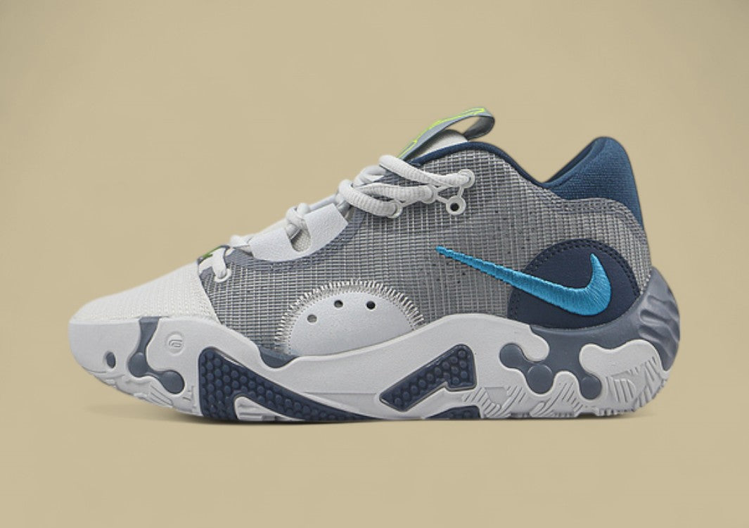 Der PG 6 EP Grey Fog Abyss Green Arsenal Blue Cold Grey Replica bringt ein ausgewogenes Zusammenspiel aus gedeckten Farben und sportlicher Funktionalität in einer hochwertig gefertigten Replik. Das Obermaterial aus leichtem Mesh in Grey Fog sorgt für maximale Atmungsaktivität und Tragekomfort, während Akzente in Abyss Green, Arsenal Blue und Cold Grey dem Schuh Tiefe und stilvolle Kontraste verleihen. Die EP-Version bietet eine breitere Passform und richtet sich an Spieler mit erhöhtem Komfortanspruch. Die React-Mittelsohle sorgt für reaktionsfreudige, federnde Dämpfung und unterstützt schnelle Richtungswechsel und harte Landungen. Ein stabilisierter Fersenbereich sowie eine profilierte Außensohle mit multidirektionalem Grip bieten zuverlässigen Halt auf jedem Court. Diese Replik vereint dezentes Design mit kraftvoller Performance – ideal für alle, die Funktionalität und subtile Farbgebung schätzen.