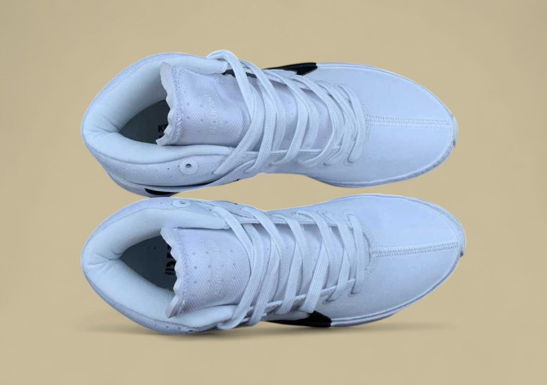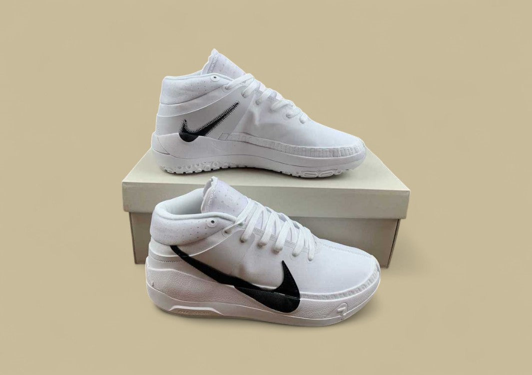 Die Nike KD TB Basketballschuhe in Clean White verkörpern puristisches Design mit leistungsstarker Technologie für anspruchsvolle Spieler. Das makellos weiße Upper strahlt Klarheit und Konzentration aus, während der kräftige schwarze Swoosh einen markanten Kontrast setzt und dem Schuh eine dominante sportliche Note verleiht. Dank der integrierten Zoom Air Dämpfung in der Zwischensohle bietet der Schuh eine reaktionsschnelle Federung und herausragenden Komfort bei schnellen Sprints, Sprüngen und abrupten Richtungswechseln. Die strapazierfähige Konstruktion und das leichte Gewicht machen diesen Schuh zur perfekten Wahl für ernsthafte Wettkämpfer, die auf Performance und stilvolle Schlichtheit setzen.