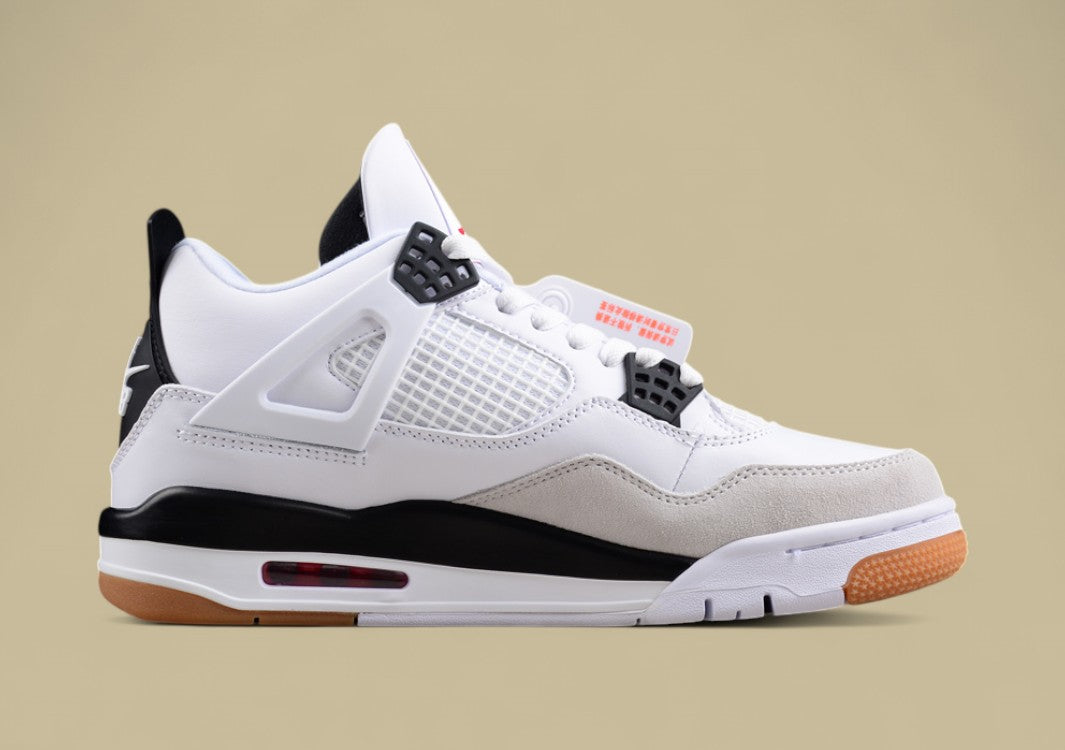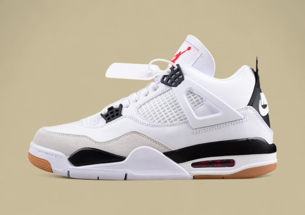 Der Nike SB x Air Jordan 4 “Sapphire” ist ein seltener, auffälliger Colorway, der die Fusion von Skateboarding-Performance und Basketball-Legende in neuem Glanz erscheinen lässt. Das Obermaterial aus strukturiertem Wildleder in tiefem Saphirblau wird durch kontrastierende weiße und schwarze Details ergänzt – ein Look, der sowohl auf dem Skateboard als auch auf der Straße für Aufmerksamkeit sorgt. Die überarbeitete Fersenkappe aus flexiblem Gummi ermöglicht verbesserte Beweglichkeit beim Skaten, während die klassische AJ4-Silhouette mit Mesh-Einsätzen, Air-Sohle und Flügel-Design erhalten bleibt. Ein Nike SB-Logo auf der Ferse ersetzt den Jumpman – das Zeichen für die Skateboard-Neuausrichtung. Diese originalgetreue Version kombiniert Komfort, Langlebigkeit und Ästhetik – gemacht für alle, die Performance und Stil in einem Sneaker suchen.