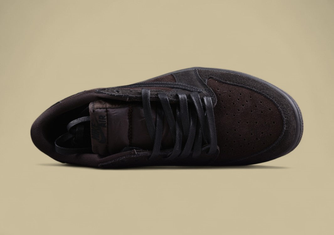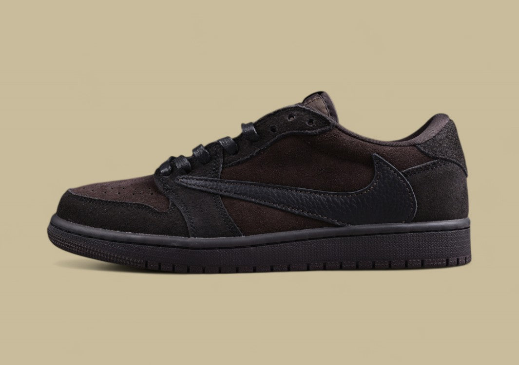 All-Black-Design mit Luxus-Finish und Travis-DNA. Ein stilvoller Jordan 1 Low für jede Gelegenheit.