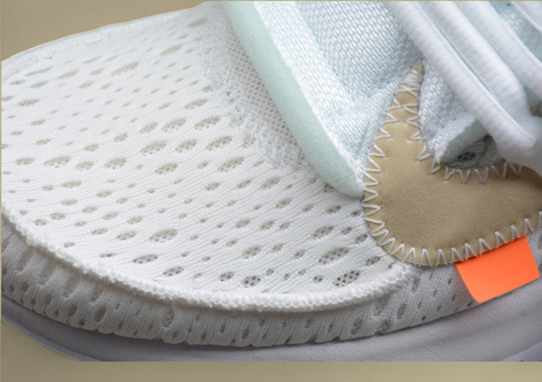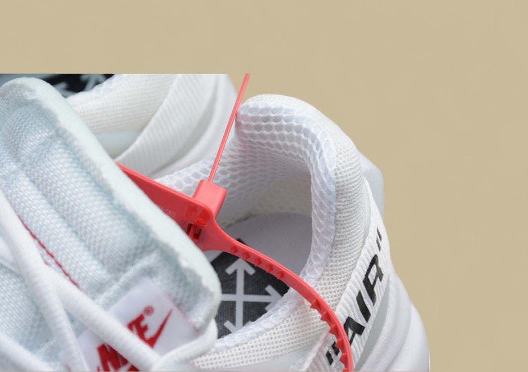 Der ST Air Presto x Off-White White Black Cone Replica bringt den cleanen Look des weißen Off-White Prestos in einer budgetfreundlichen, dennoch stilvollen Replik-Version. Das atmungsaktive weiße Mesh-Obermaterial bietet ein leichtes, bequemes Tragegefühl und passt sich dem Fuß wie eine zweite Haut an. Der schwarze Swoosh mit grober Naht sticht deutlich hervor und bildet zusammen mit dem orangefarbenen Tag, dem typischen „AIR“-Print auf dem Fersenriemen und dem Off-White-Schriftzug auf der Innenseite den charakteristischen Virgil Abloh-Look. Die sichtbare Schaumstoffzunge und die muslinfarbene Midsole runden den dekonstruieren Stil perfekt ab. Die ST-Version bietet eine ordentliche Replik mit akzeptabler Form, guter Alltagstauglichkeit und den wichtigsten Designelementen – ideal für alle, die den Off-White-Style zu einem günstigen Preis erleben möchten.