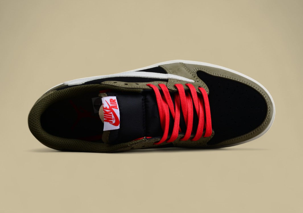 Olivegrün trifft auf Travis’ Signature-Style – subtil, edel, ikonisch.Der AJ1 Low OG „Olive“ ist Hype und Understatement in perfekter Balance.
