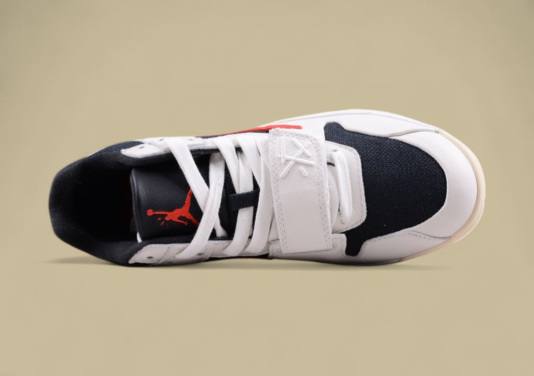 Der Travis Scott x Jordan Jumpman Jack TR „University Red“ bringt explosive Farbenergie in das innovative Trainingsmodell von La Flame und Jordan Brand. Der Sneaker kombiniert cremefarbene Textilien mit intensiven University Red-Overlays, die sich an der Außensohle, dem Swoosh und den Branding-Details wiederfinden. Der umgekehrte Swoosh auf der Außenseite bleibt das visuelle Markenzeichen von Travis, während der breite Klettverschluss über dem Spann für sportliche Funktionalität sorgt. Cactus Jack-Logos auf der Zunge und Ferse unterstreichen die Handschrift der Kollaboration. Die profilierte Außensohle bietet stabilen Grip für jede Bewegung – ob beim Workout oder auf der Straße. Dieser Sneaker ist ein Statement für alle, die mutiges Design und sportliche Performance kombinieren wollen.