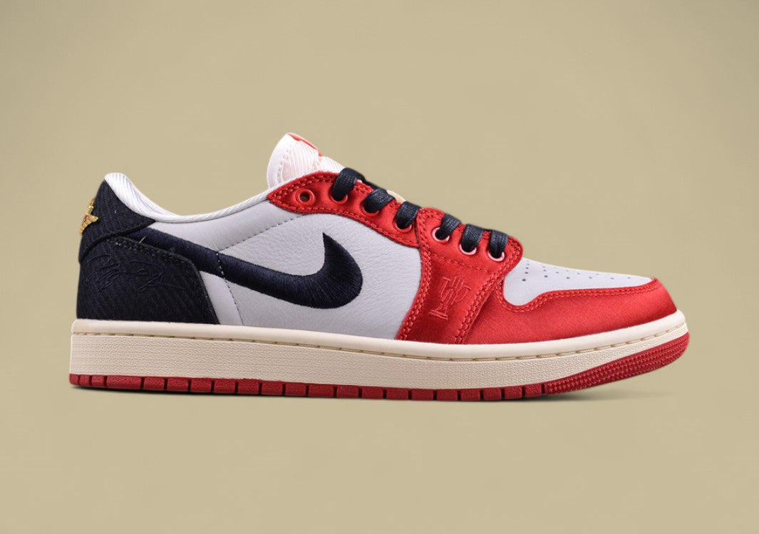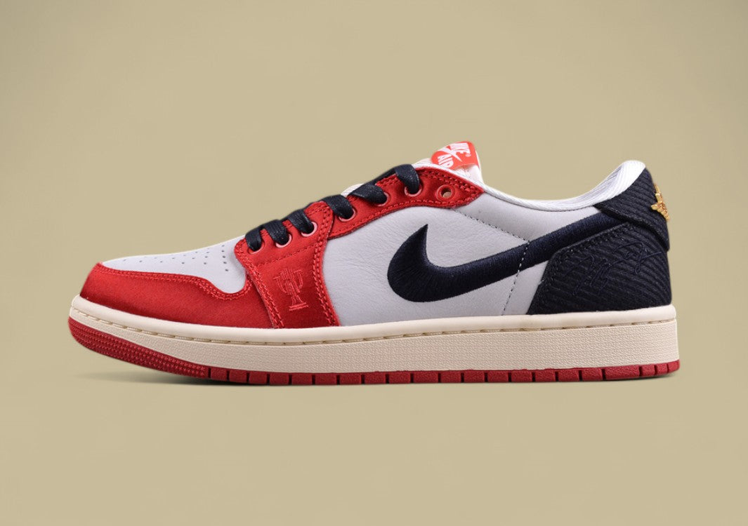 Der Trophy Room x Air Jordan 1 Low OG "Rookie Card – Home" ist eine Hommage an Michael Jordans legendäre Rookie-Karte und verbindet nostalgischen Sammlerwert mit exklusivem Design. In Zusammenarbeit mit Trophy Room, der Boutique von Marcus Jordan, kombiniert dieser Sneaker klassische Farben der Chicago Bulls mit hochwertigen Materialien, darunter geschmeidiges Leder und feine Wildledereinsätze. Goldene Akzente, gestickte Logos und spezielle Details wie die Einlegesohle mit Rookie-Karten-Motiv machen diesen Schuh zu einem echten Highlight für Fans und Sammler. Die niedrige Silhouette bleibt sportlich-elegant und bringt Geschichte und Hype perfekt in Einklang