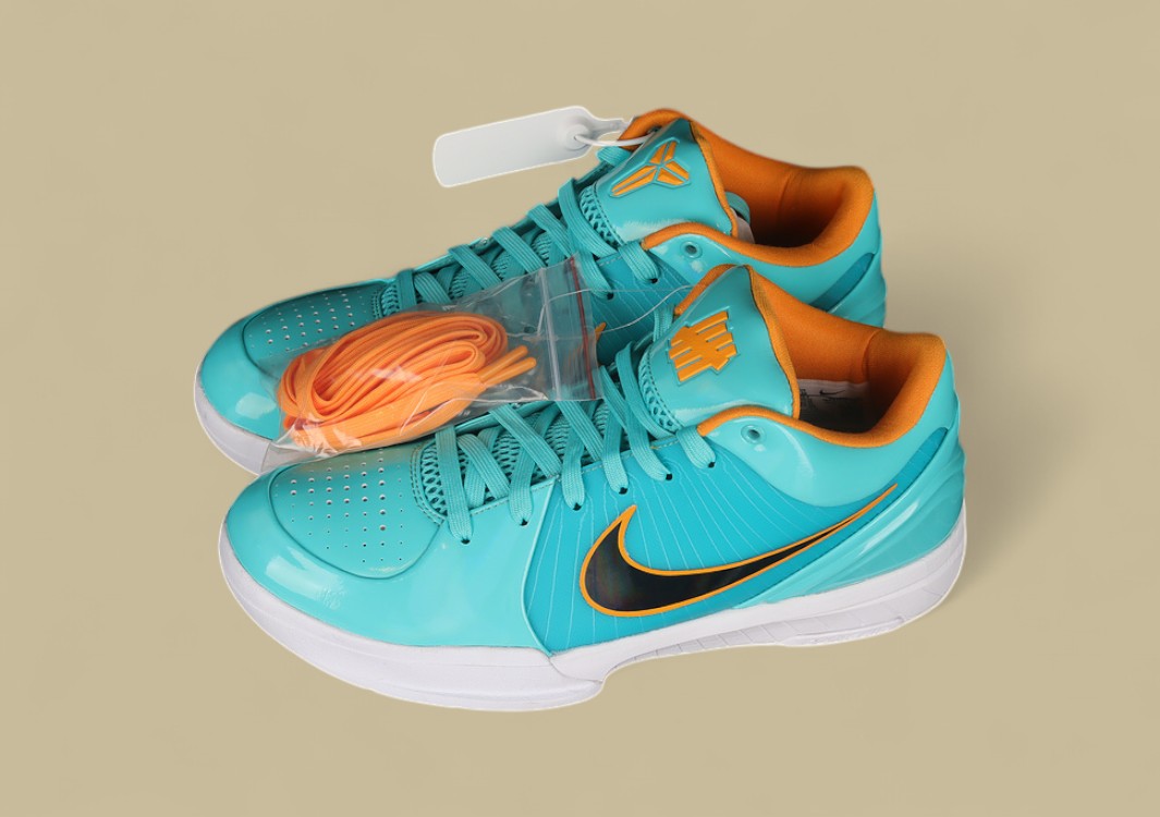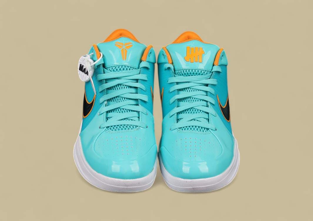 Limitierter Kobe 4 Protro in Jadegrün mit Mango-Details & Undefeated-Branding.Starkes Statement auf dem Court – stylisch, schnell und exklusiv.